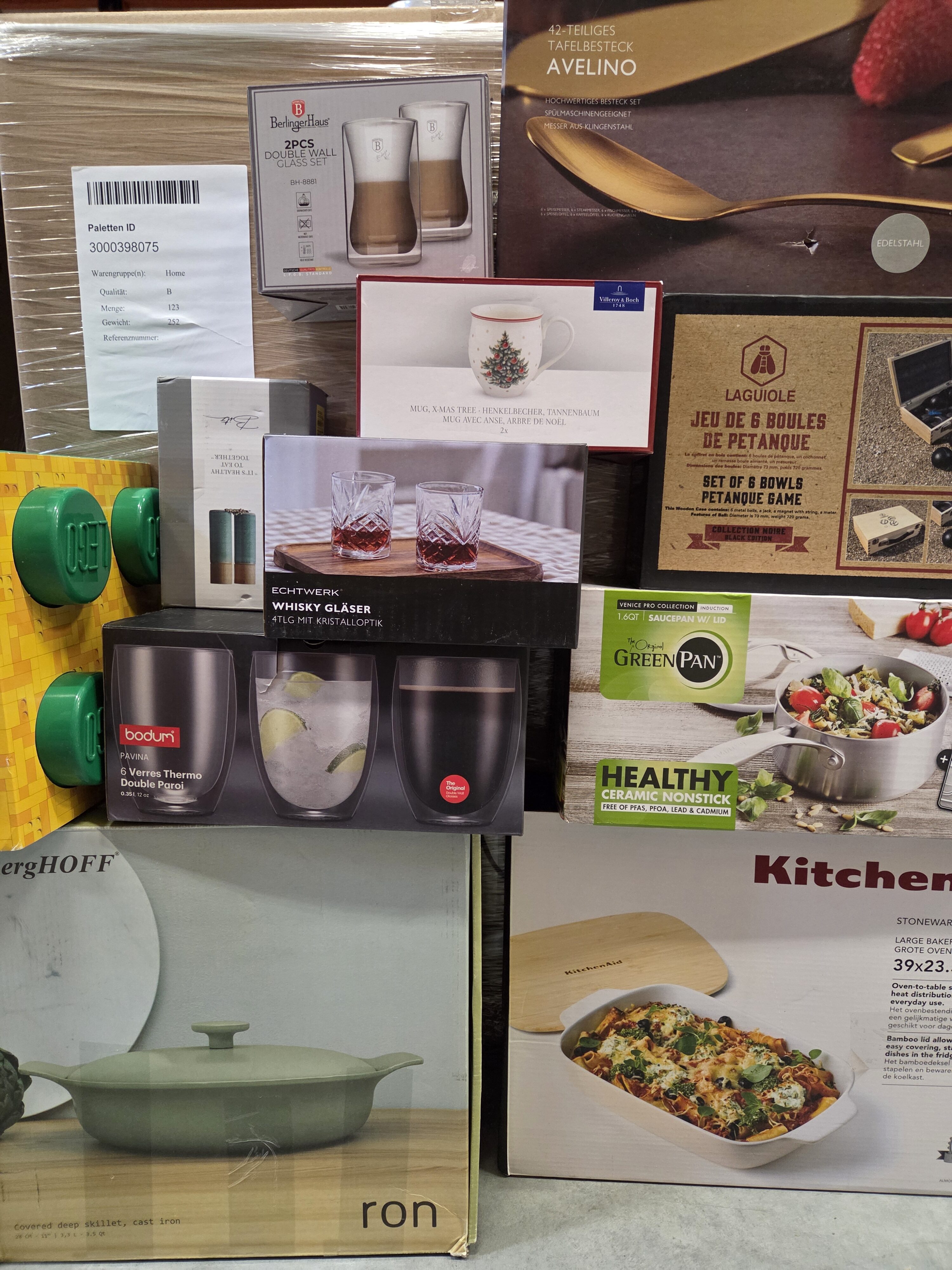 Items may show signs of use or defects (manufacturer faults, damaged packaging, scratches, missing parts, or product damage). Pallets may include, among others: bed linens, pillows, poufs, towels, slippers, etc.