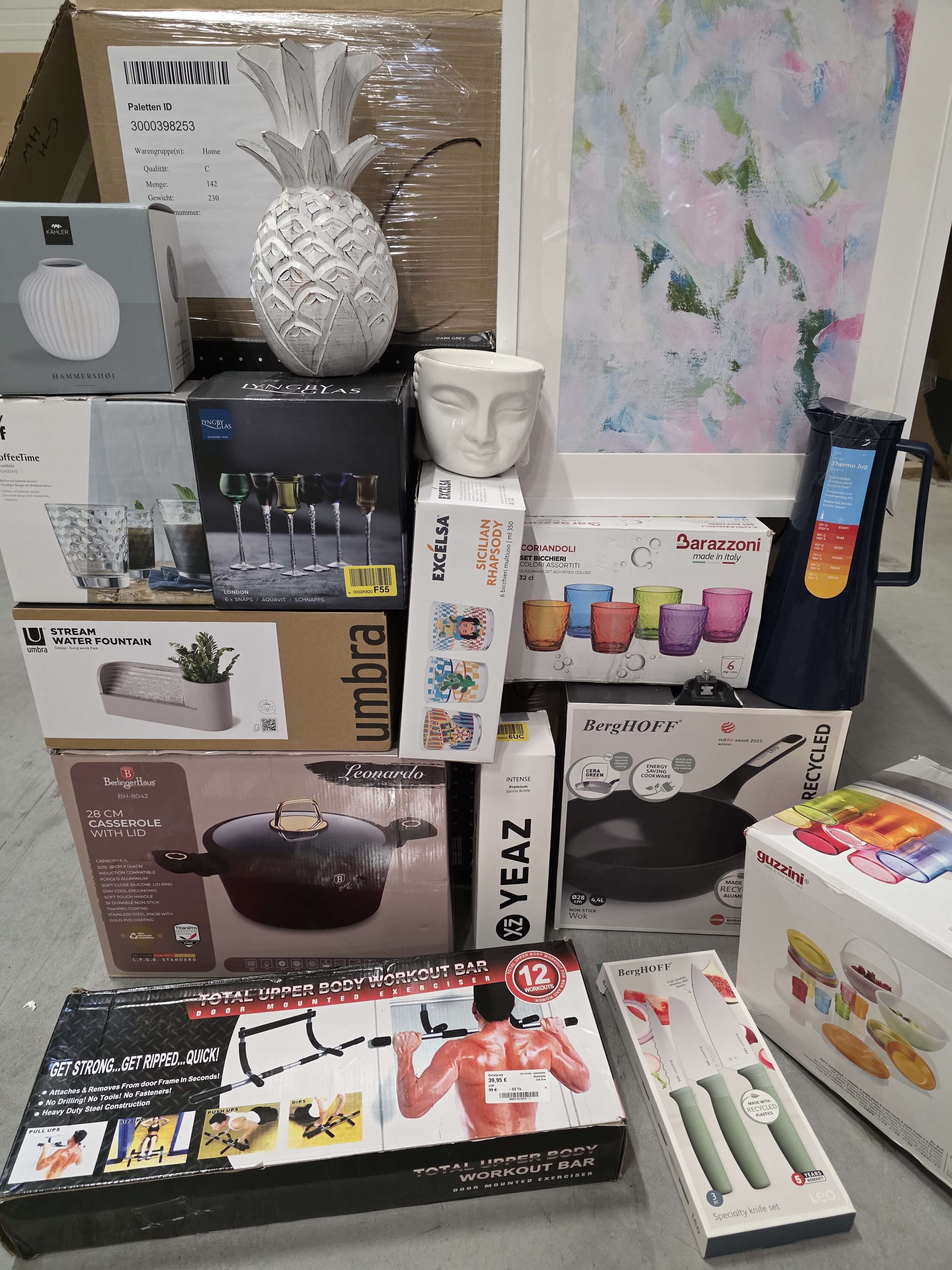Pallet with home accessories, i.e. paintings, kitchen accessories, pictures, kitchenware, candles, furnishings, etc. Category C – defects.