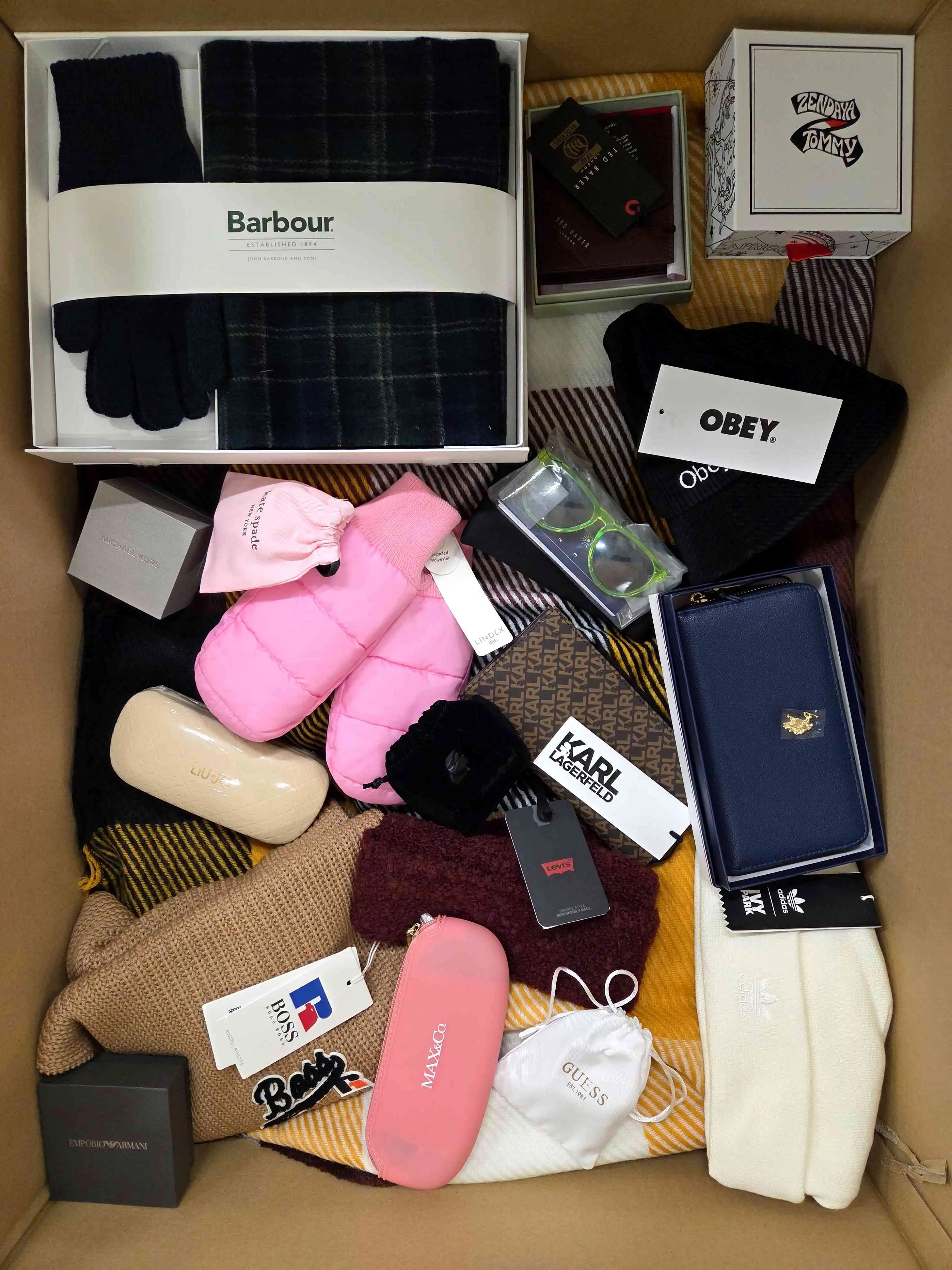 Accessories completely new, without any defects. Each package contains accessories, such as belts, wallets, scarves, socks, key rings, hats, neckerchiefs, jewelry and many others.
