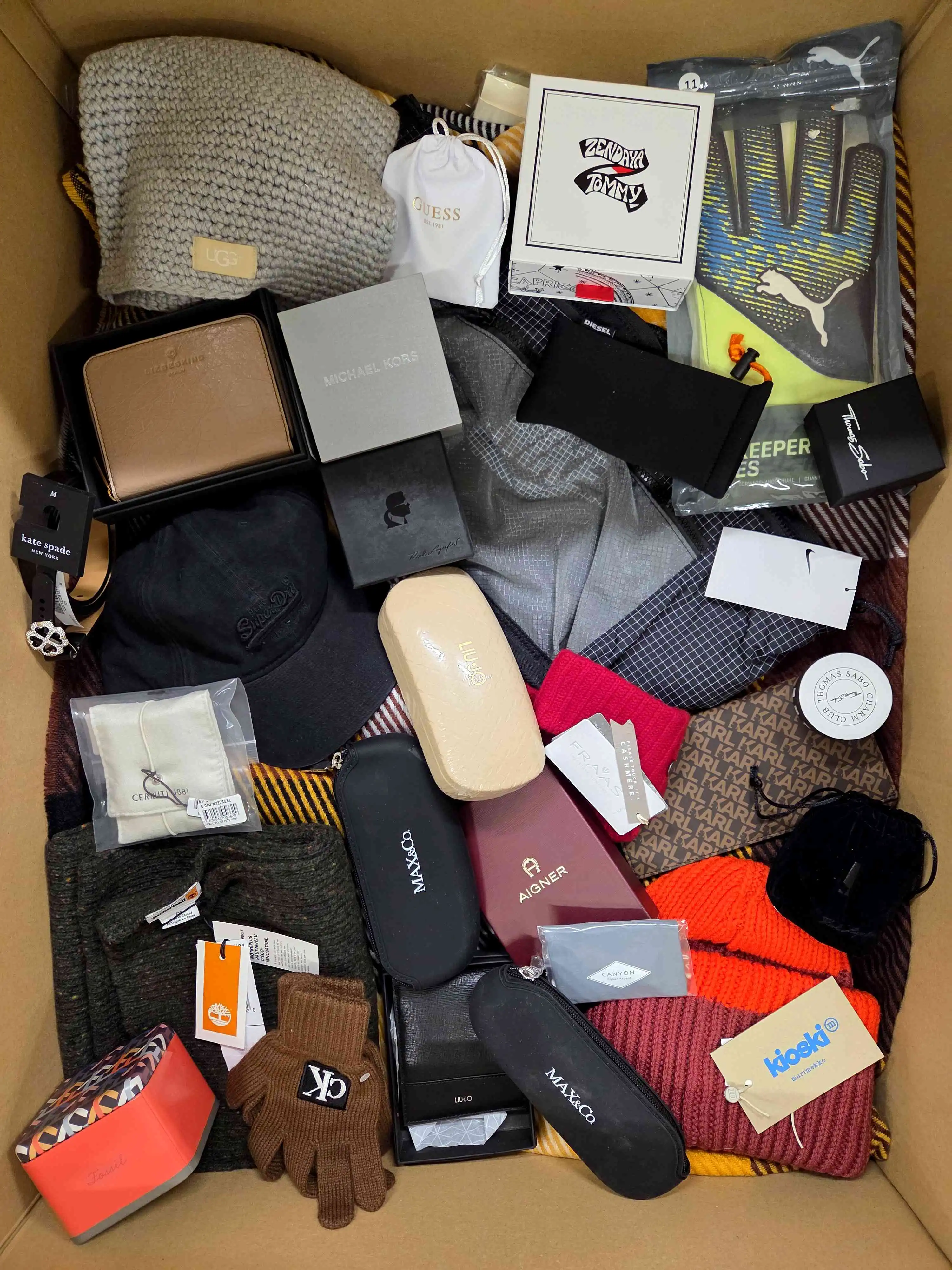 Accessories completely new, without any defects. Each package contains accessories, such as belts, wallets, scarves, socks, key rings, hats, neckerchiefs, jewelry and many others.