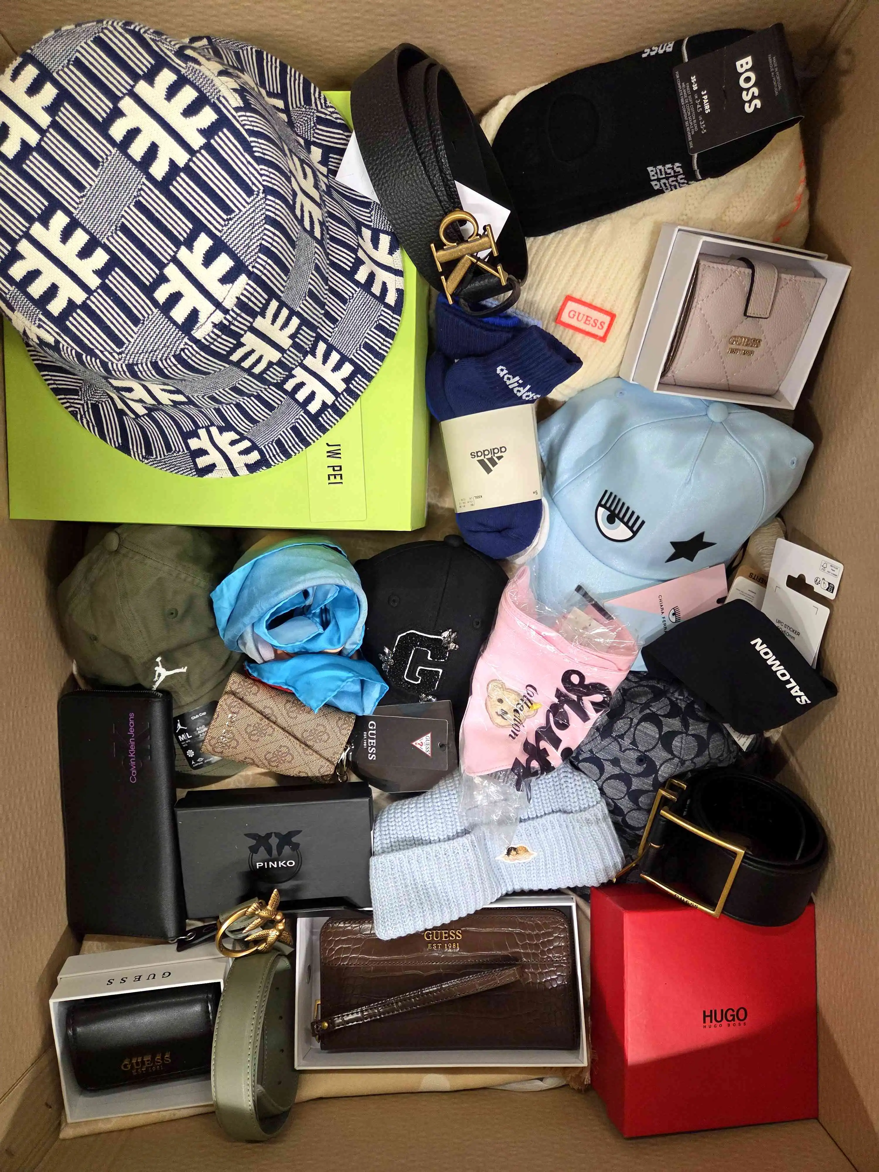 Premium accessories in category C. Inside you will find wallets, belts, scarves, tights, socks, glasses, baseball caps,. Prevalence of winter hats, scarves, gloves . There are 70 pieces in the package.