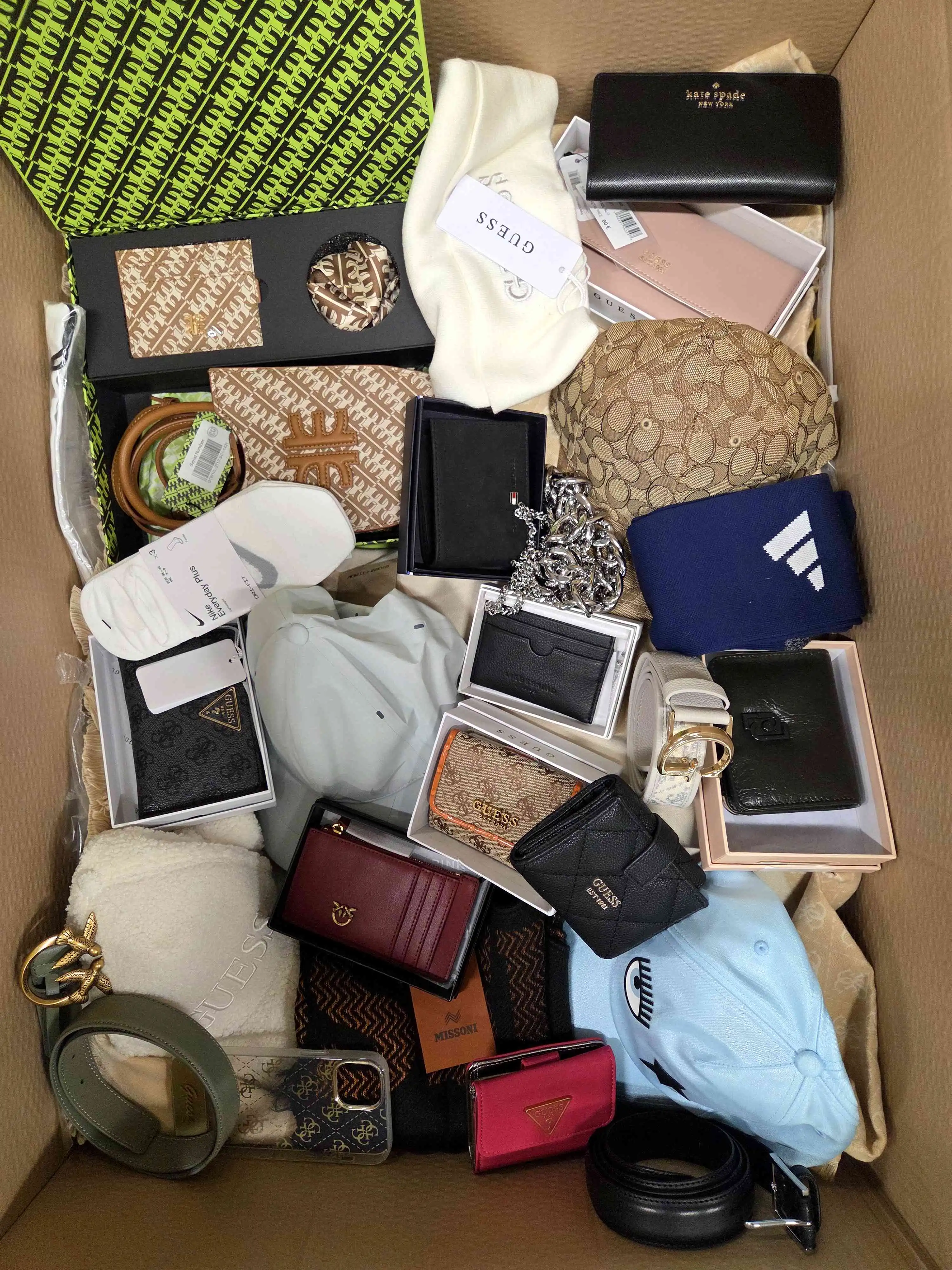 Premium accessories in category C. Inside you will find wallets, belts, scarves, tights, socks, glasses, baseball caps,. Prevalence of winter hats, scarves, gloves . There are 70 pieces in the package.