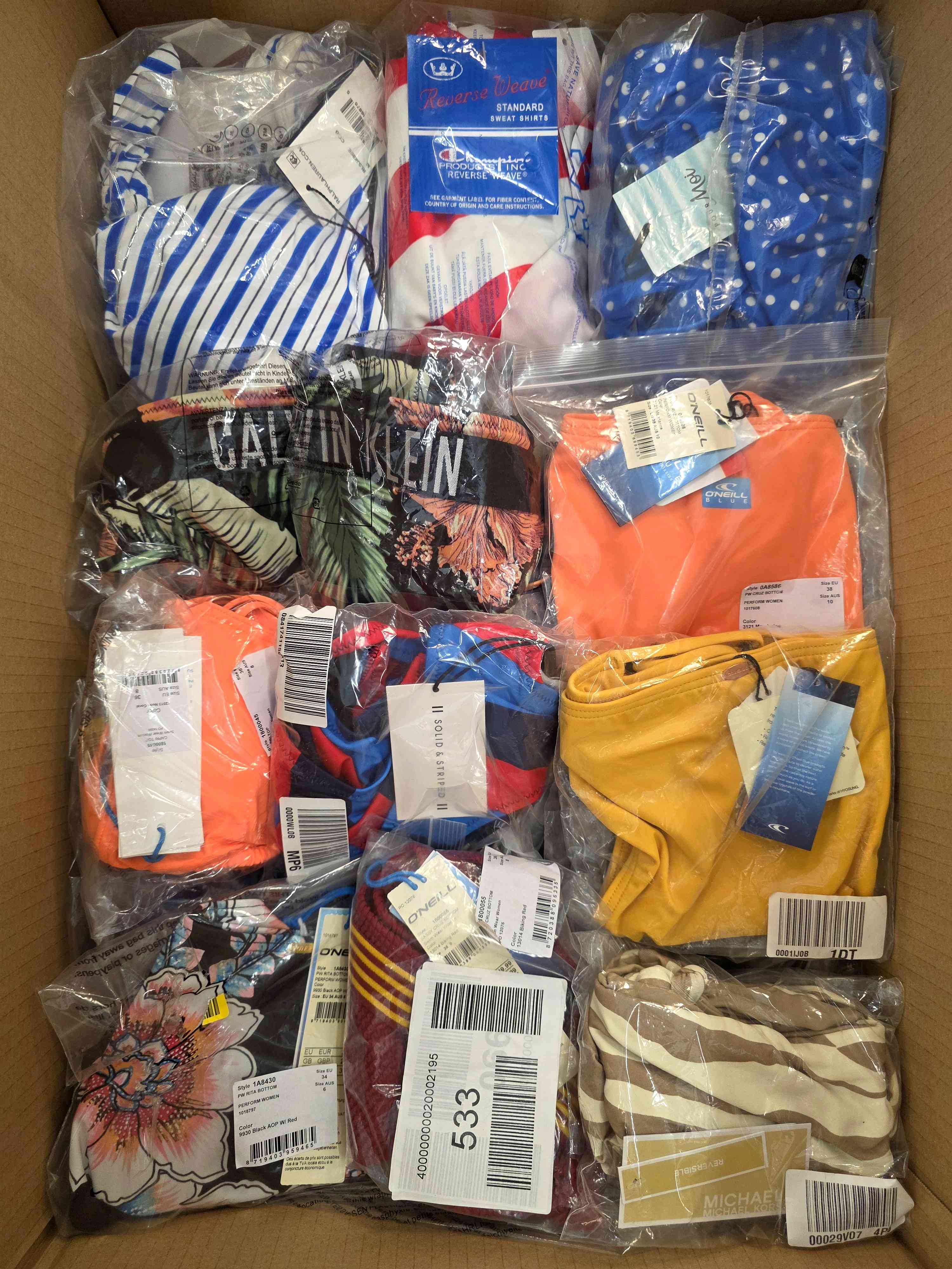Category A beachwear from one of the most recognized eCommerce platforms. Clothing is new, without defects and originally packaged.
