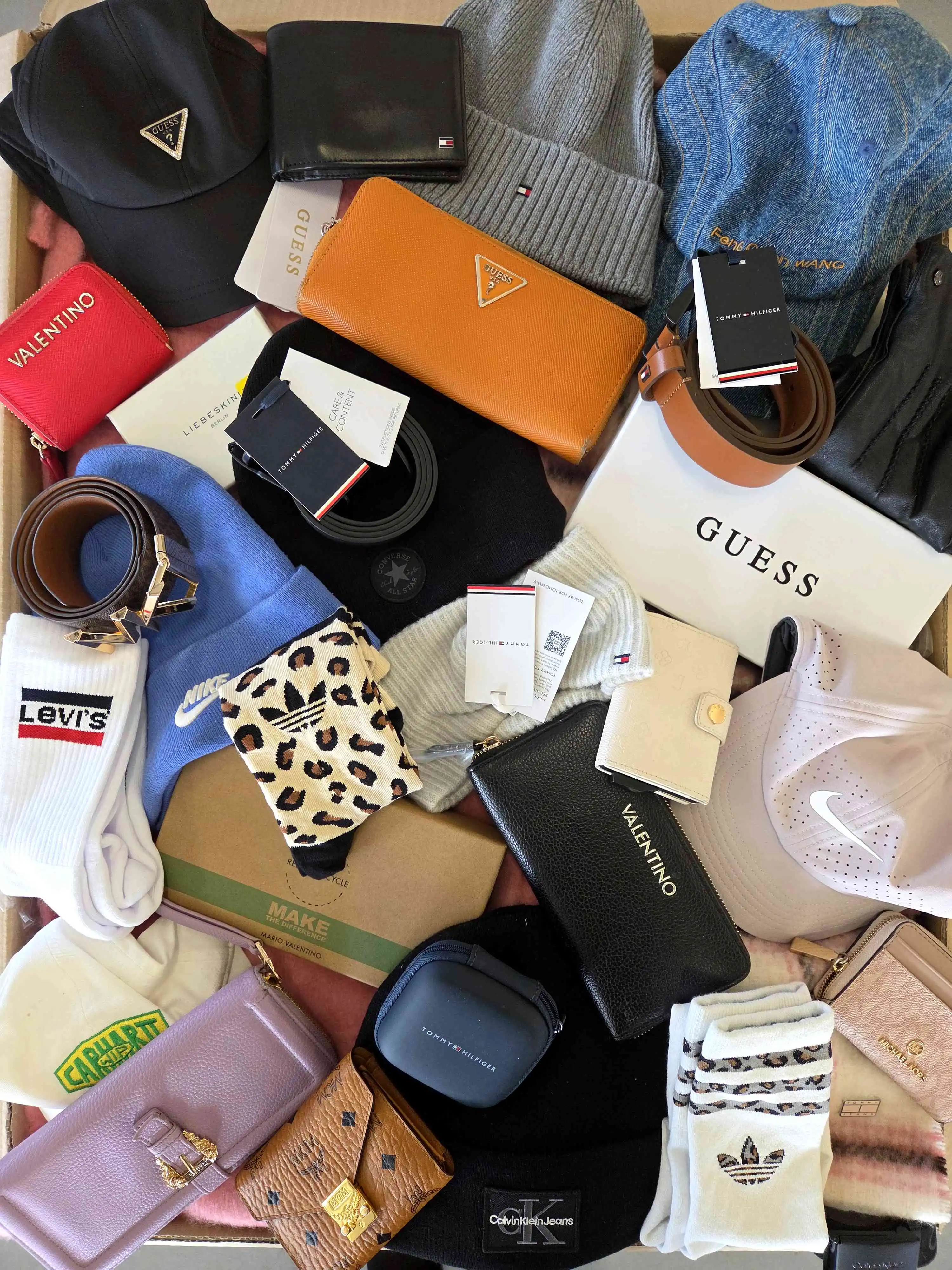 Premium accessories in category C. Inside you will find, among others: tights, bras, wallets, belts, scarves, socks, glasses, baseball caps, sachets, etc. There are about 190 pieces in the package.