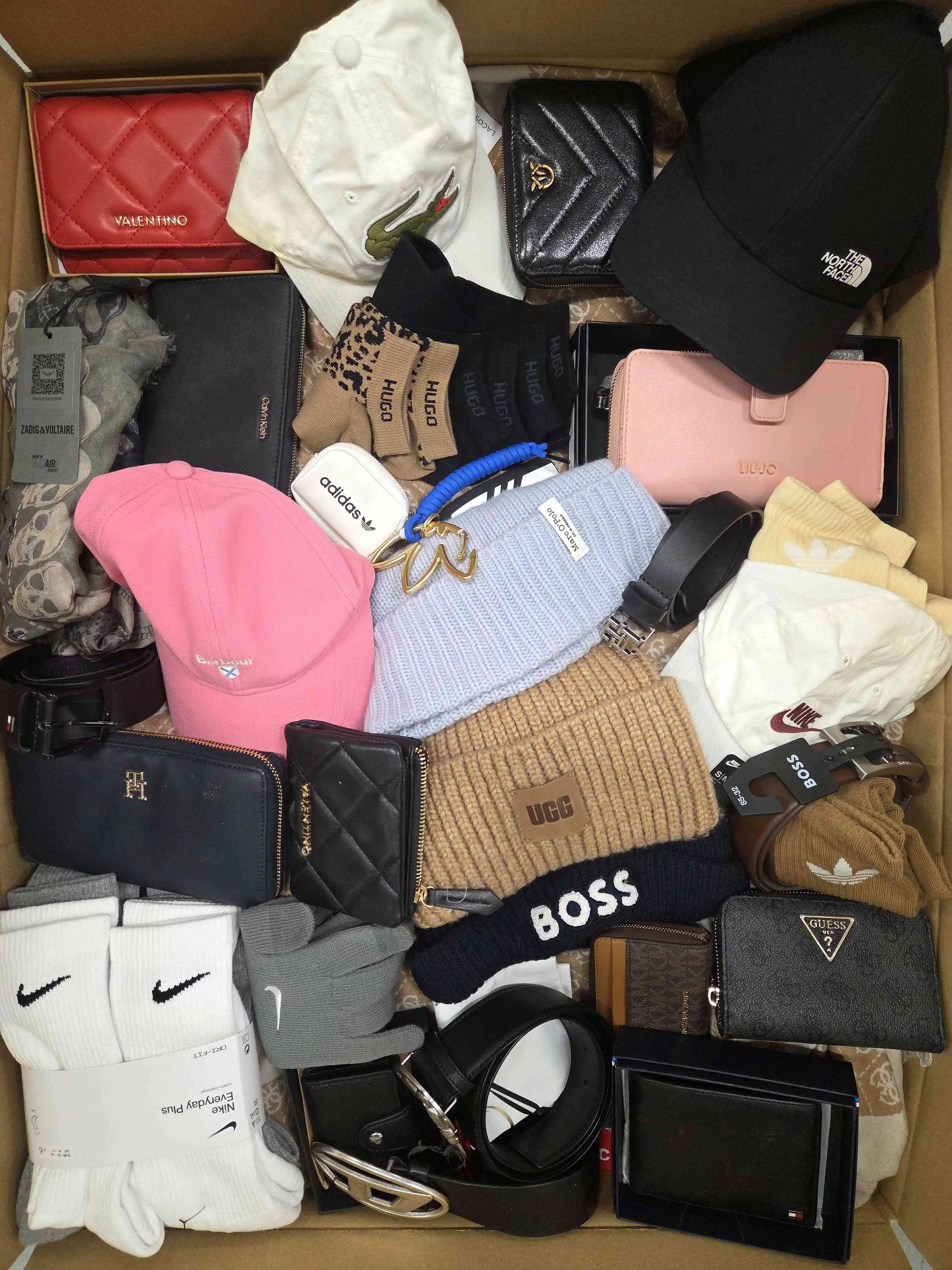 Premium accessories in category C. Inside you will find, among others: tights, bras, wallets, belts, scarves, socks, glasses, baseball caps, sachets, etc. There are about 160 pieces in the package.