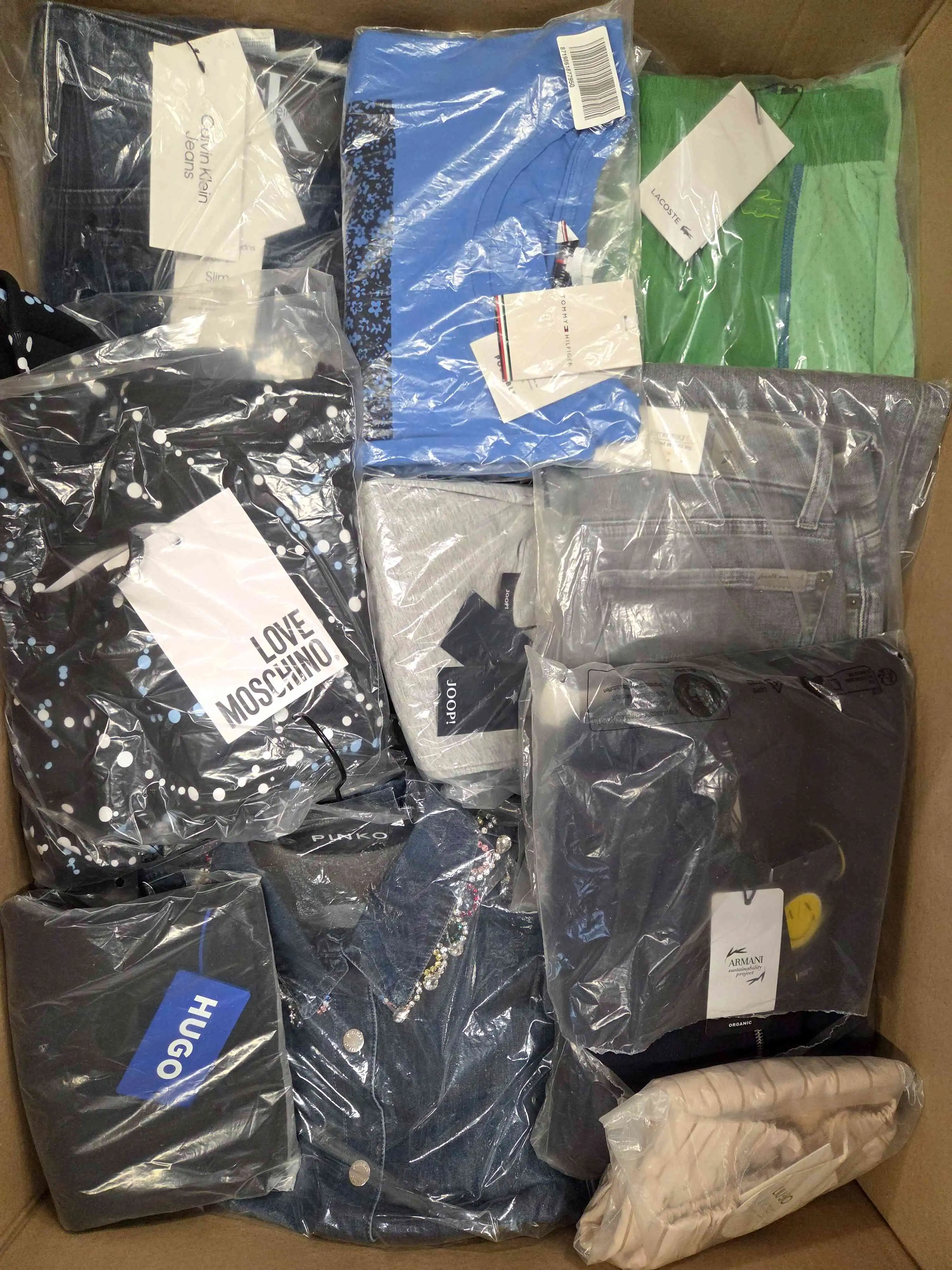 Package contents include: sweatpants/elegant pants, jeans, sweatshirts, sweaters, dresses, t-shirts, shirts, etc. Approximately 99% of garments with original paper tag.