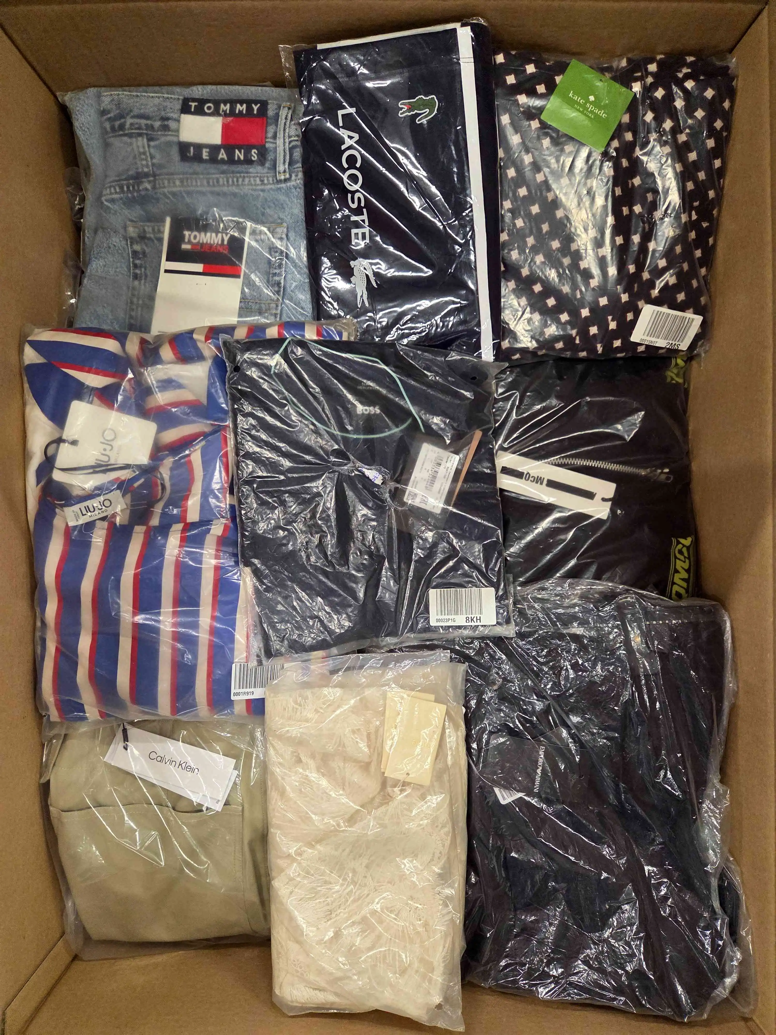 Package contents include: sweatpants/elegant pants, jeans, sweatshirts, sweaters, dresses, t-shirts, shirts, etc. Approximately 99% of garments with original paper tag.
