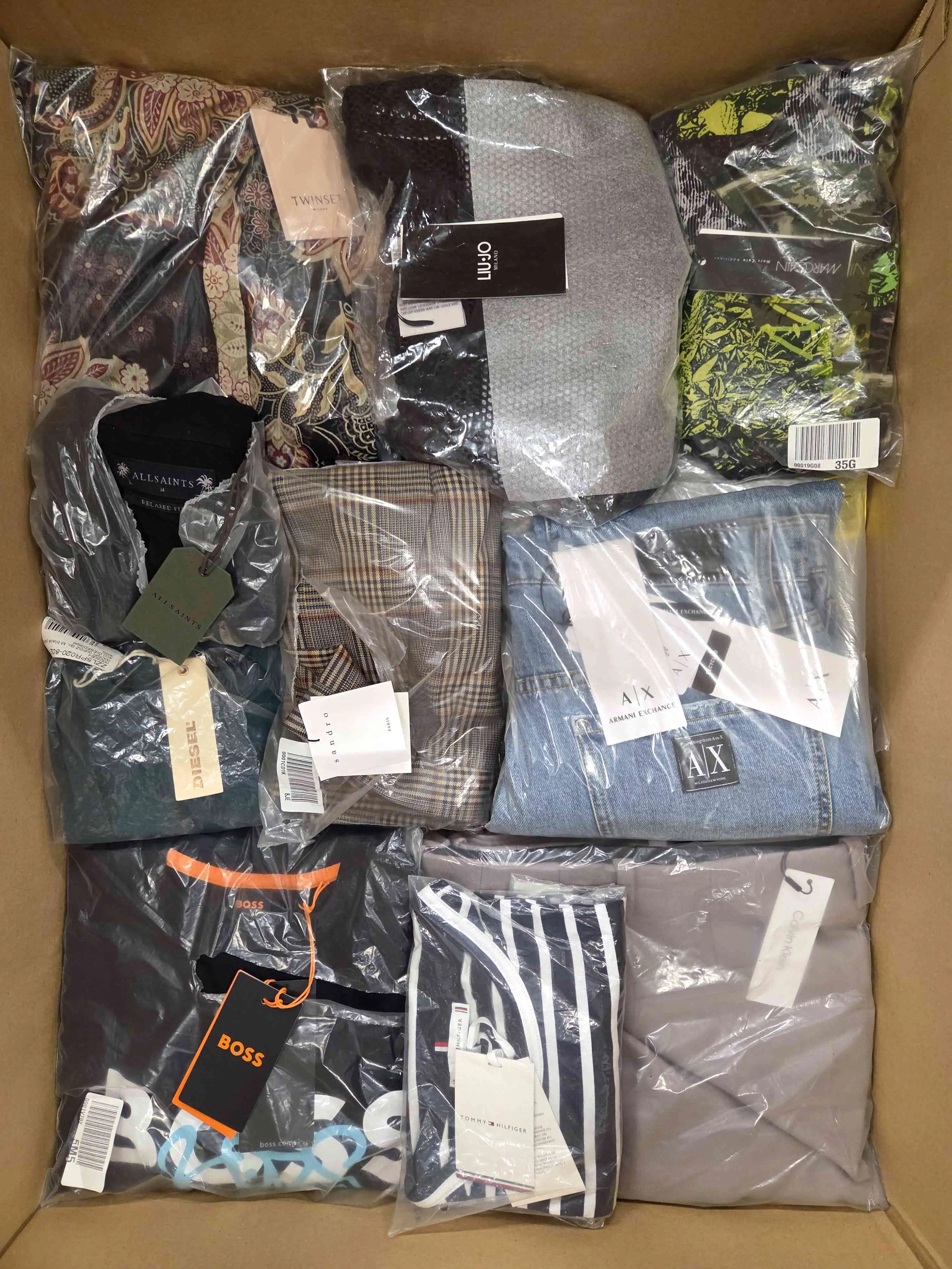 Package contents include: sweatpants/elegant pants, jeans, sweatshirts, sweaters, dresses, t-shirts, shirts, etc. Approximately 99% of garments with original paper tag.