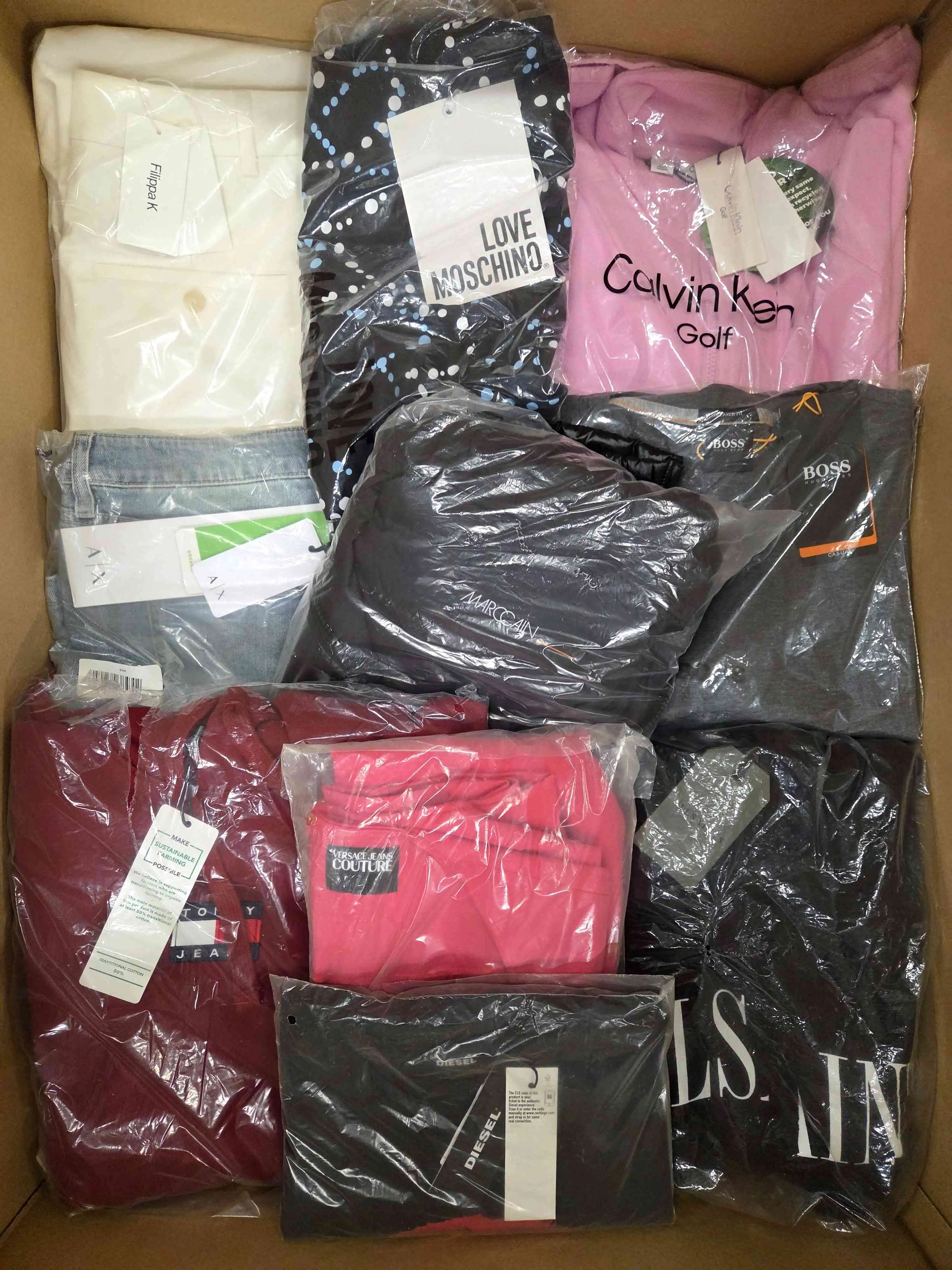 Package contents include: sweatpants/elegant pants, jeans, sweatshirts, sweaters, dresses, t-shirts, shirts, etc. Approximately 99% of garments with original paper tag.