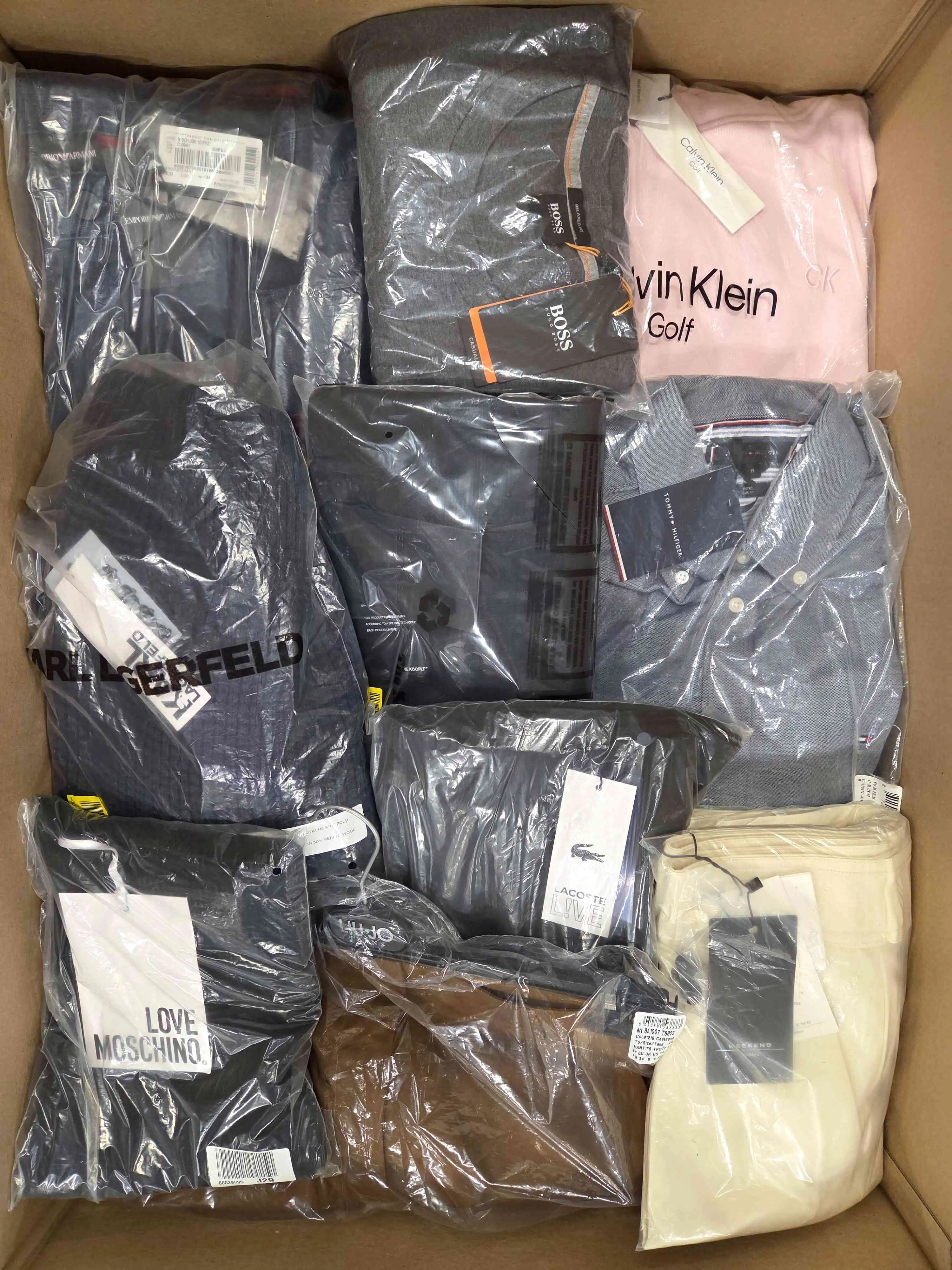 Package contents include: sweatpants/elegant pants, jeans, sweatshirts, sweaters, dresses, t-shirts, shirts, etc. Approximately 99% of garments with original paper tag.