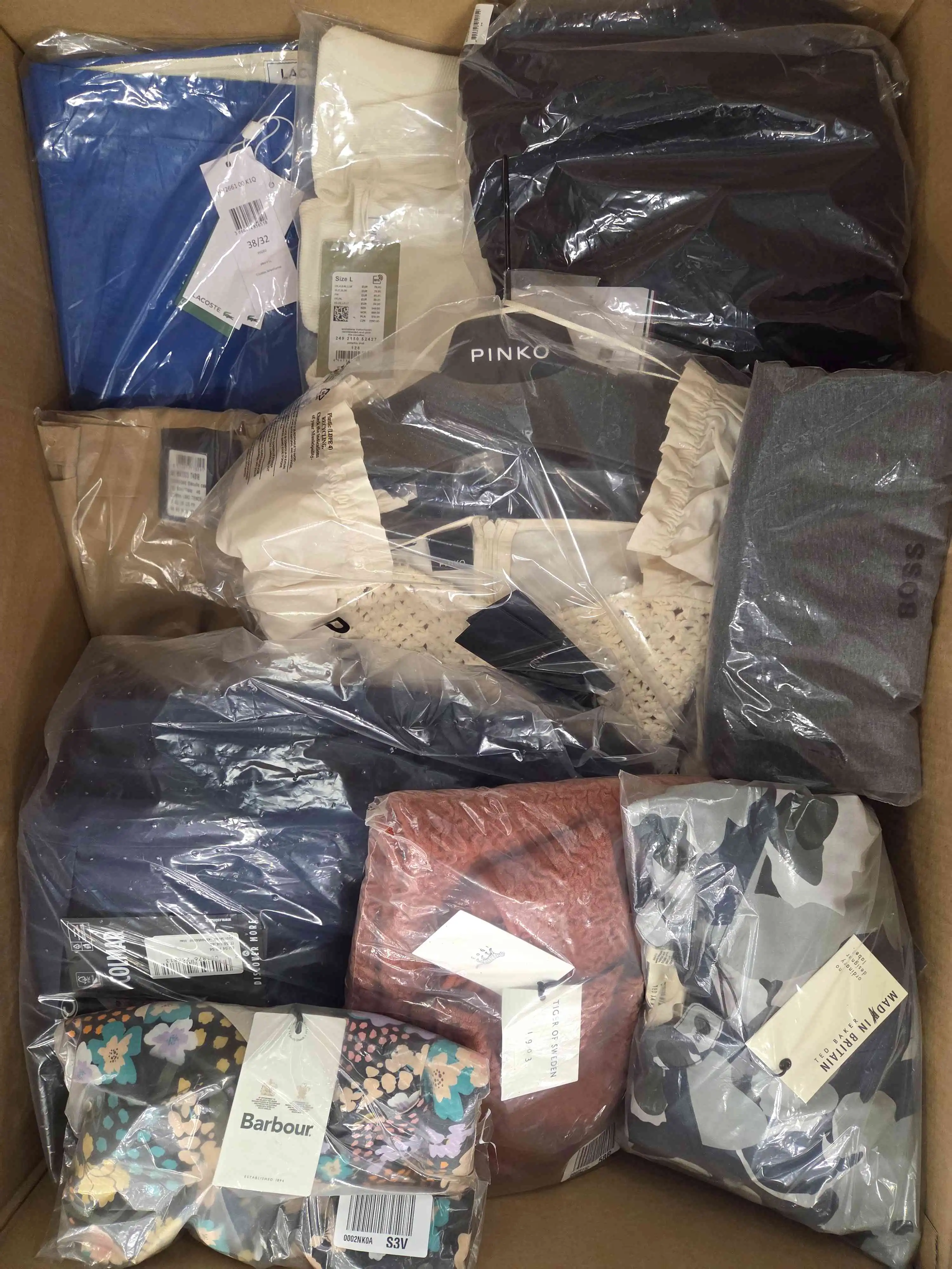 Package contents include: sweatpants/elegant pants, jeans, sweatshirts, sweaters, dresses, t-shirts, shirts, etc. Approximately 99% of garments with original paper tag.