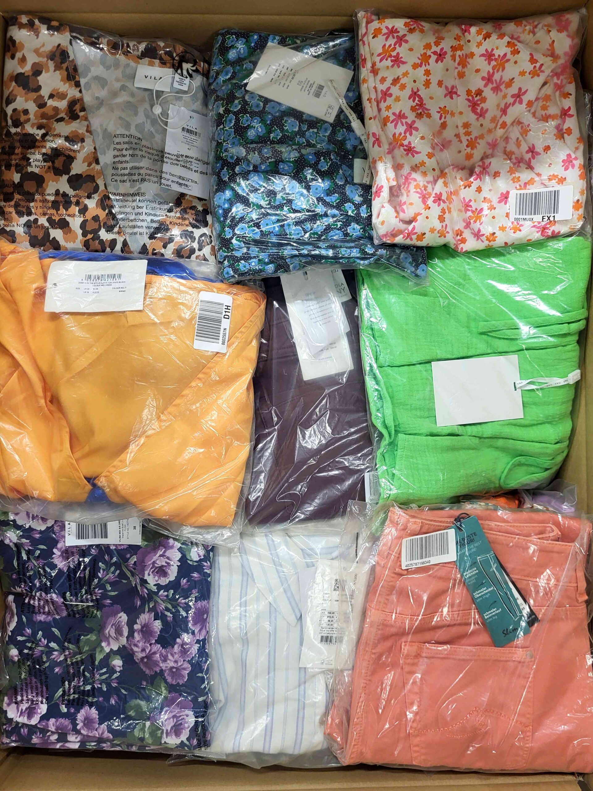 Approximately 100% package with paper tag. The package includes about 90 pcs. The packages include: pants, dresses, blouses (including tops), blouses/shirts, t-shirts. The package contains about 90% women’s clothing and single pieces of men’s and childre