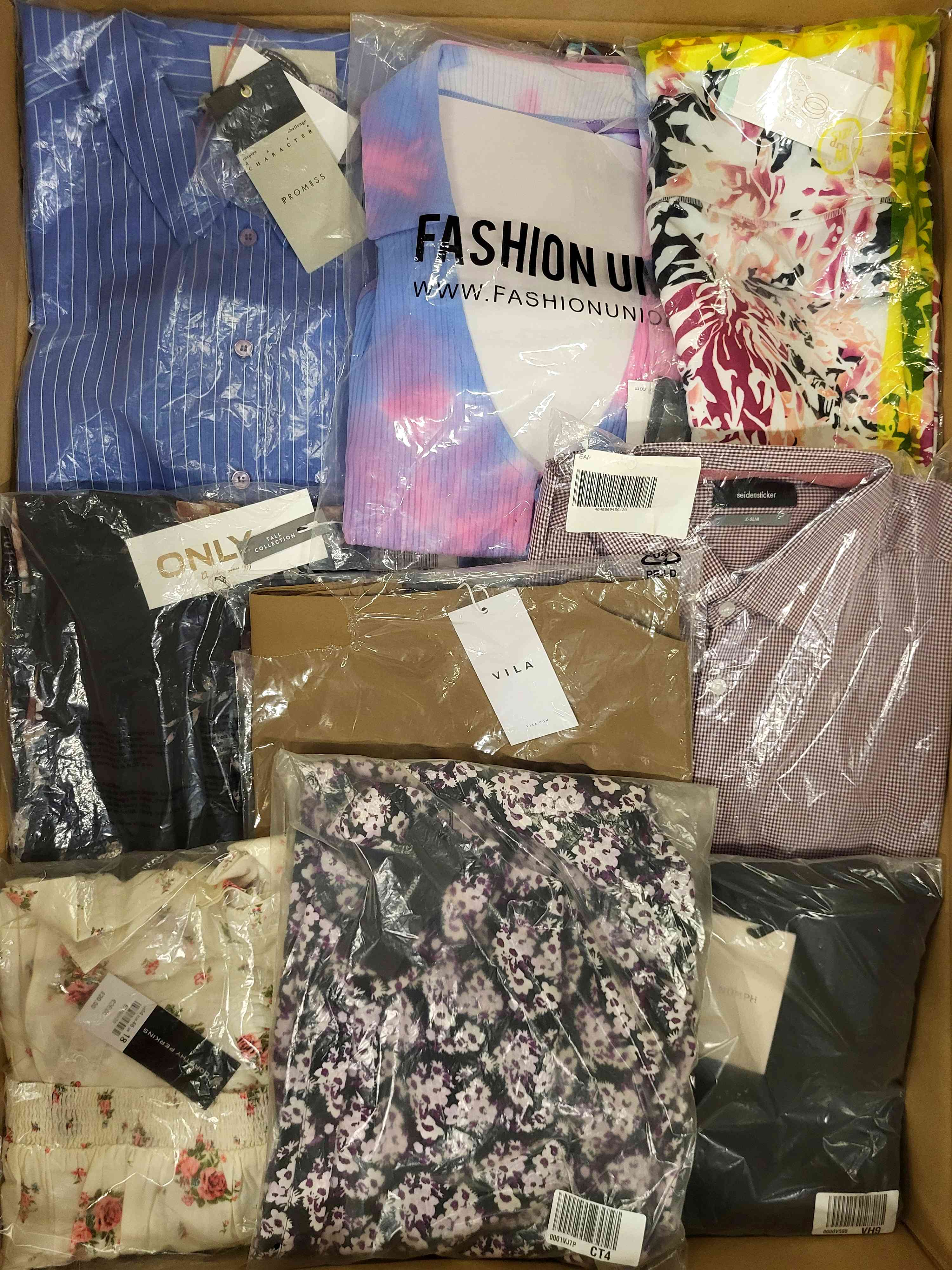 Approximately 100% package with paper tag. The package includes about 90 pcs. The packages include: pants, dresses, blouses (including tops), blouses/shirts, t-shirts. The package contains about 90% women’s clothing and single pieces of men’s and childre