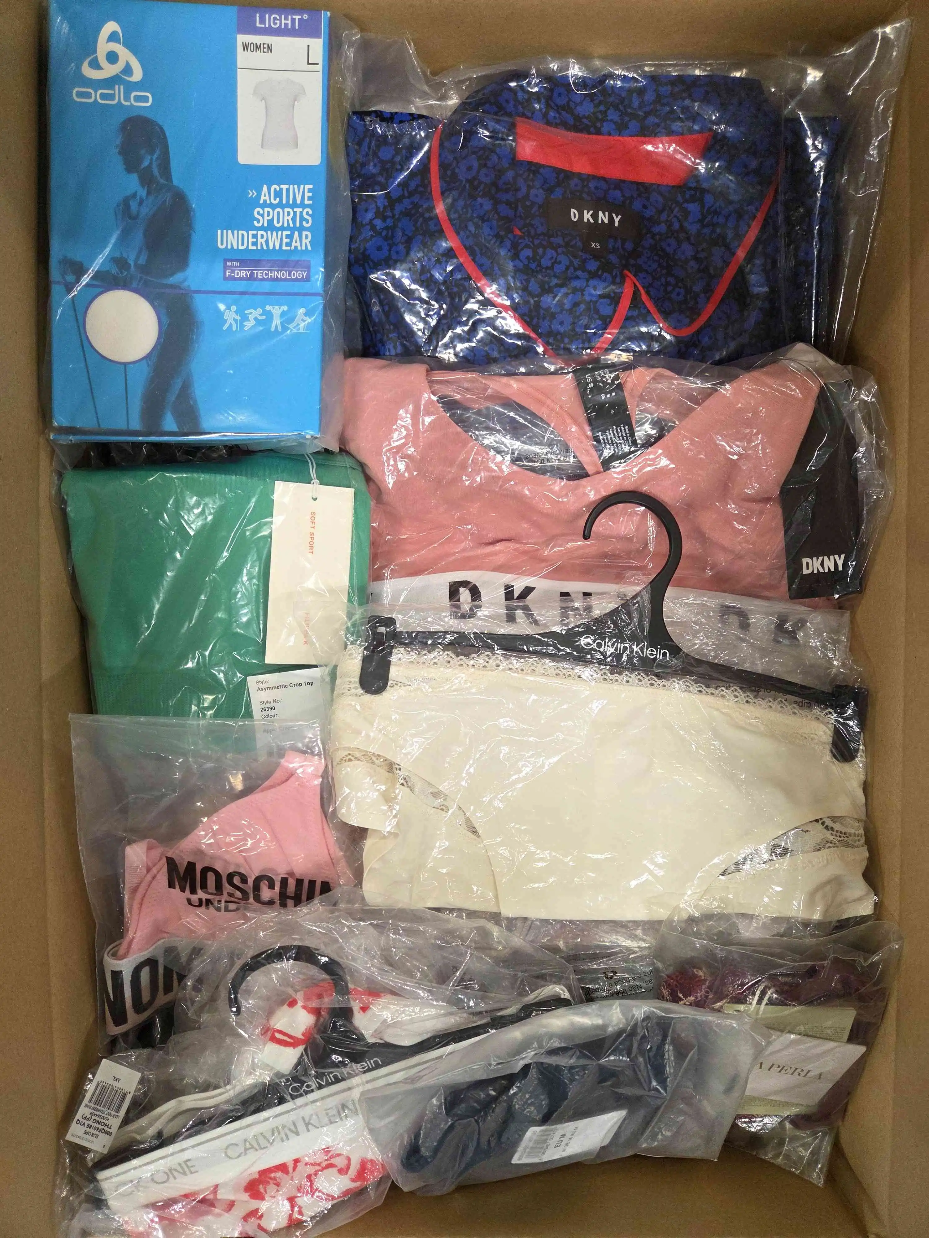 Each package includes 70pcs including pyjamas, singlets, nightshirts, shorts, briefs, underwear sets, socks, boxers, sports bras, children’s briefs, single pieces of swimwear. Approx. 30% are the most recognisable brands. Category A packages contain products from previous collections and seasons.