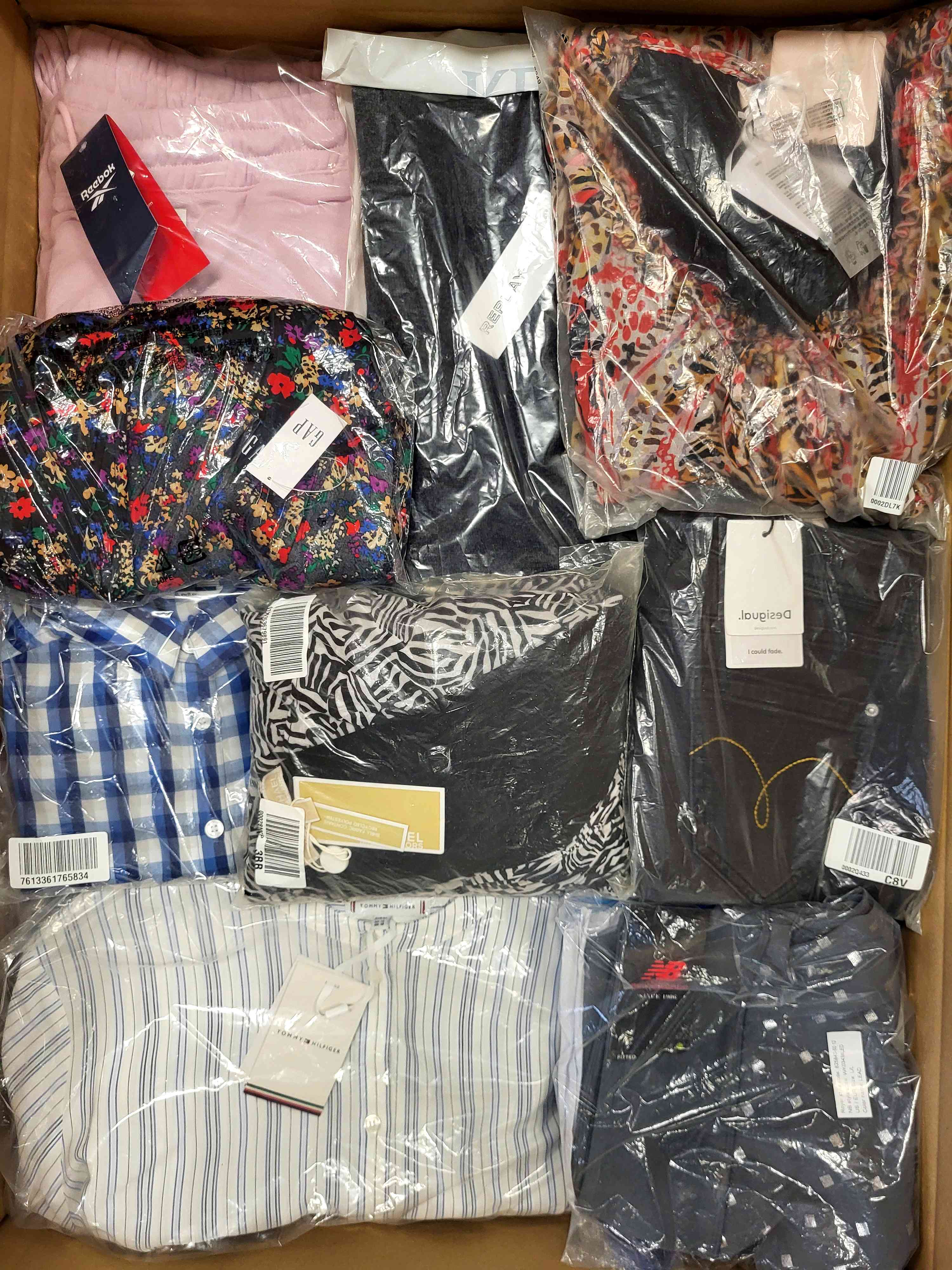 Women’s clothing package containing a mix of brands in quality category A. Approx. 100% of the package with a paper label, and 25% are the most recognizable brands. The top layer shown is the contents of this package and shows the best brands.