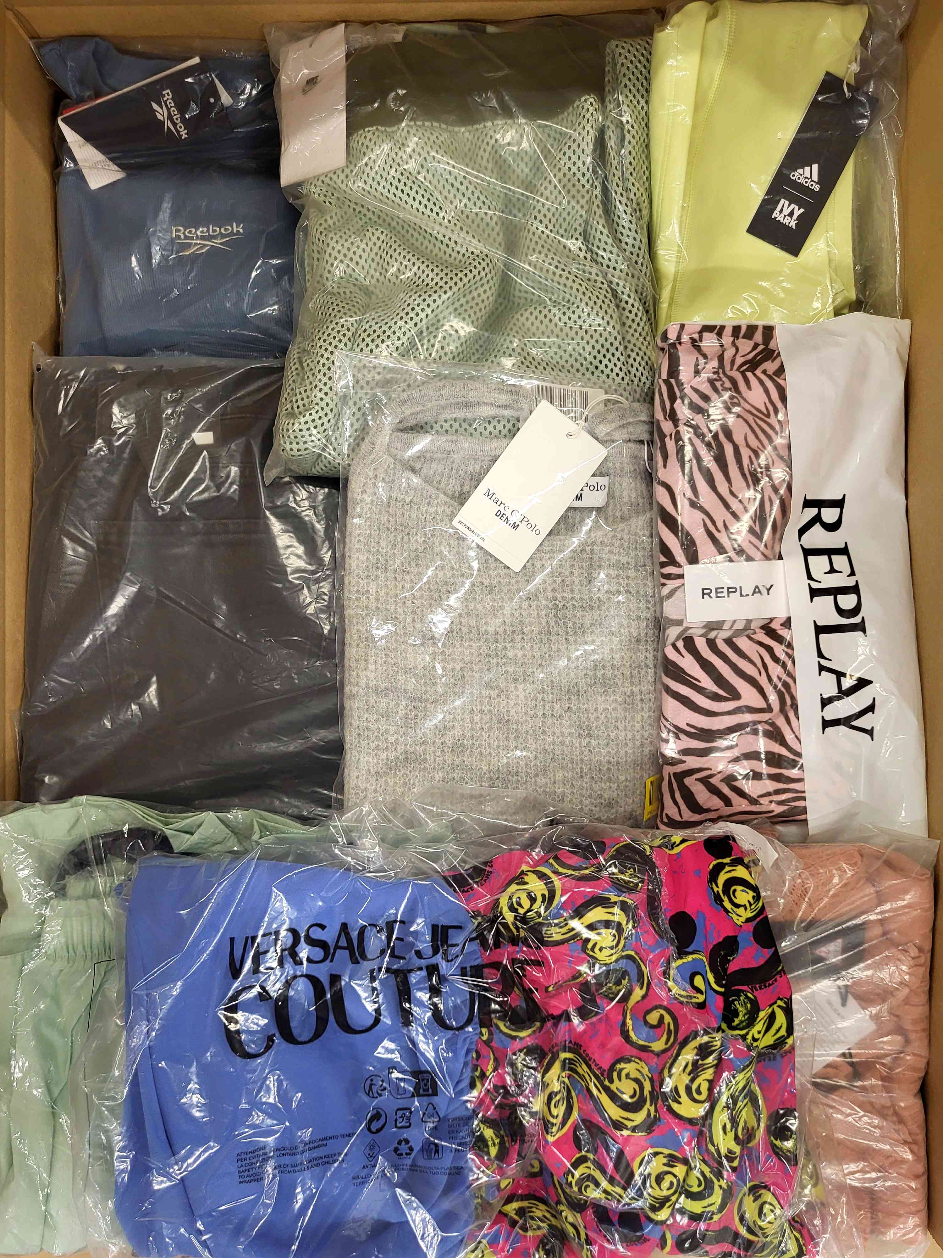Women’s clothing package containing a mix of brands in quality category A. Approx. 100% of the package with a paper label, and 25% are the most recognizable brands. The top layer shown is the contents of this package and shows the best brands.