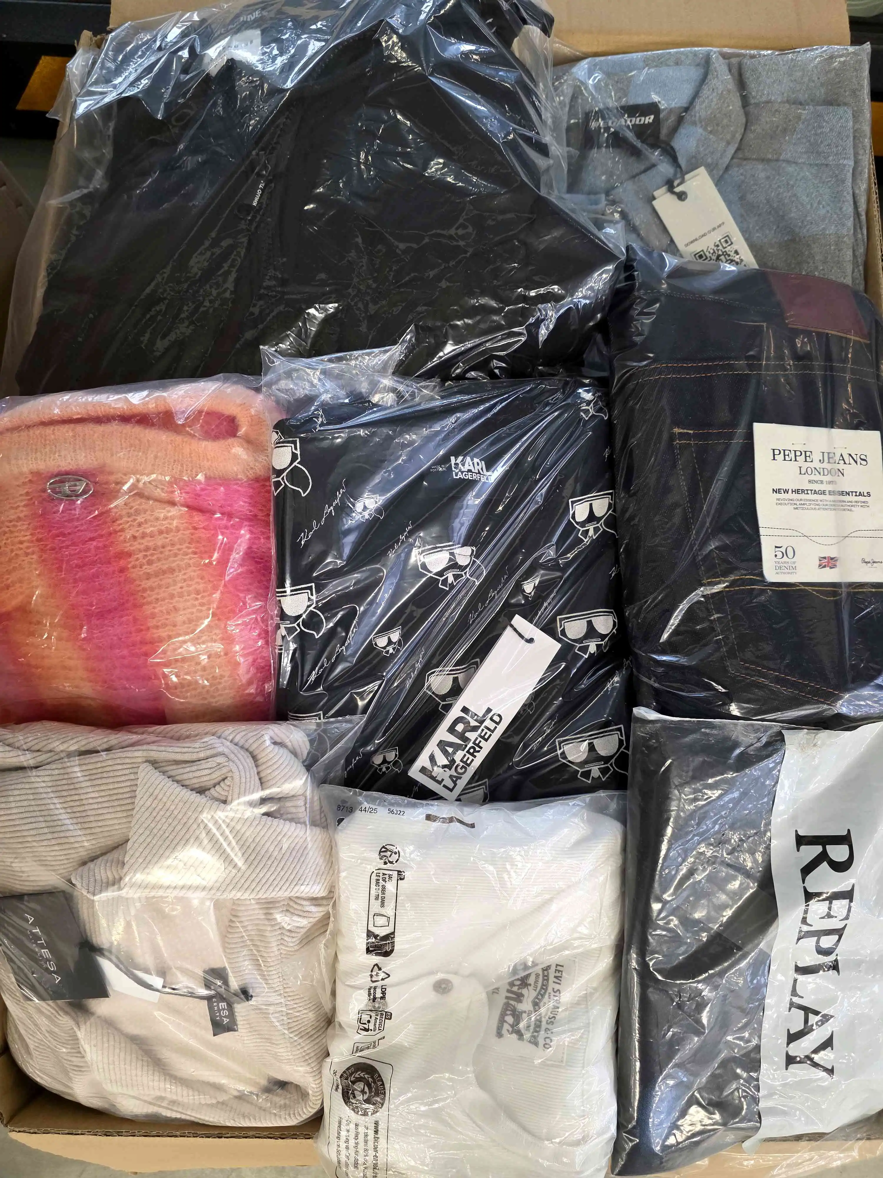 The package on average contains about 50 garments. Approx. 20% of the garments are the most recognizable brands.