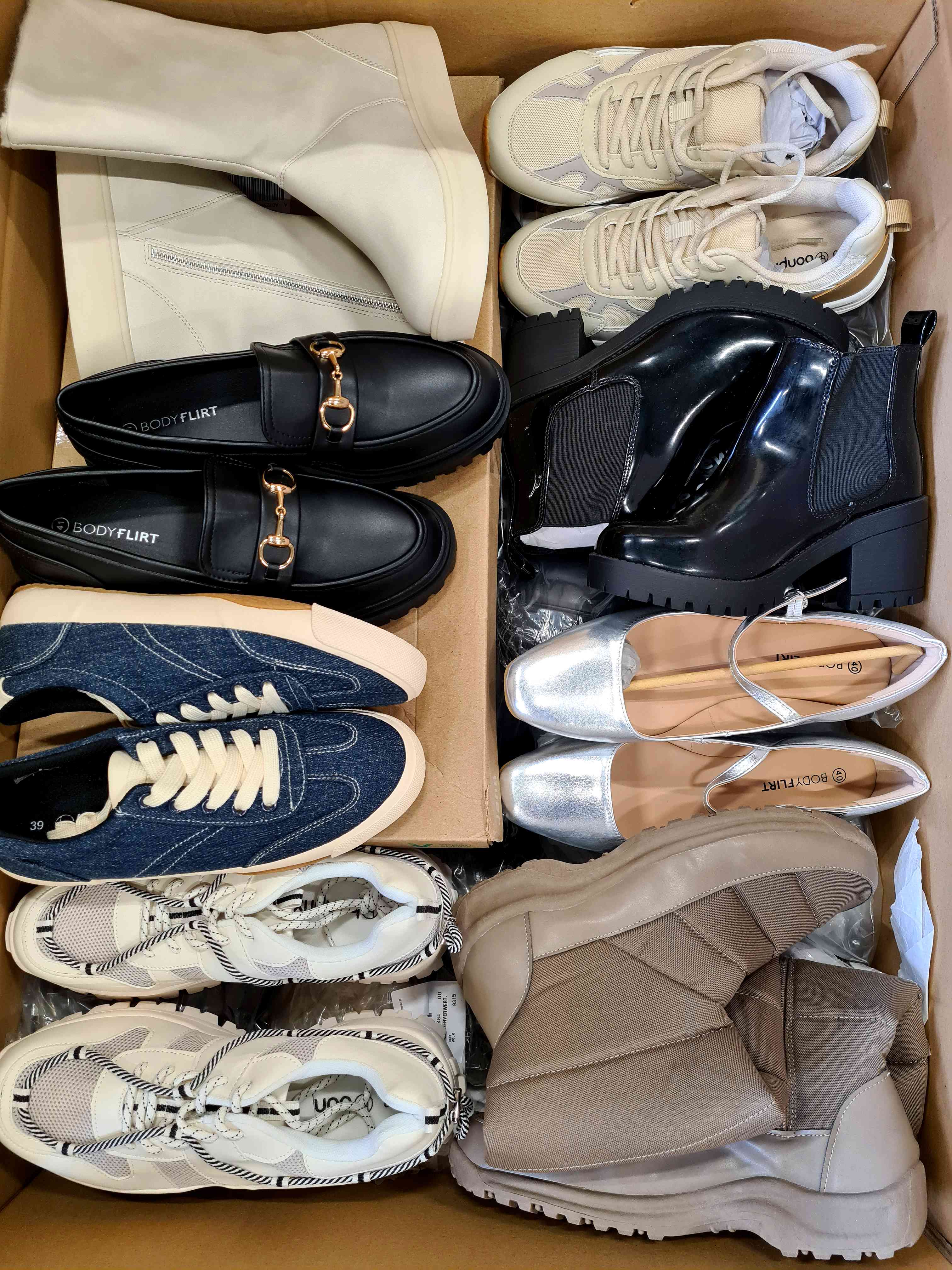Package of 25 pairs of shoes – mix of women’s and men’s models. Various sizes and seasons. Category A/B – minor, almost invisible flaws. Most of the footwear is in very good condition
