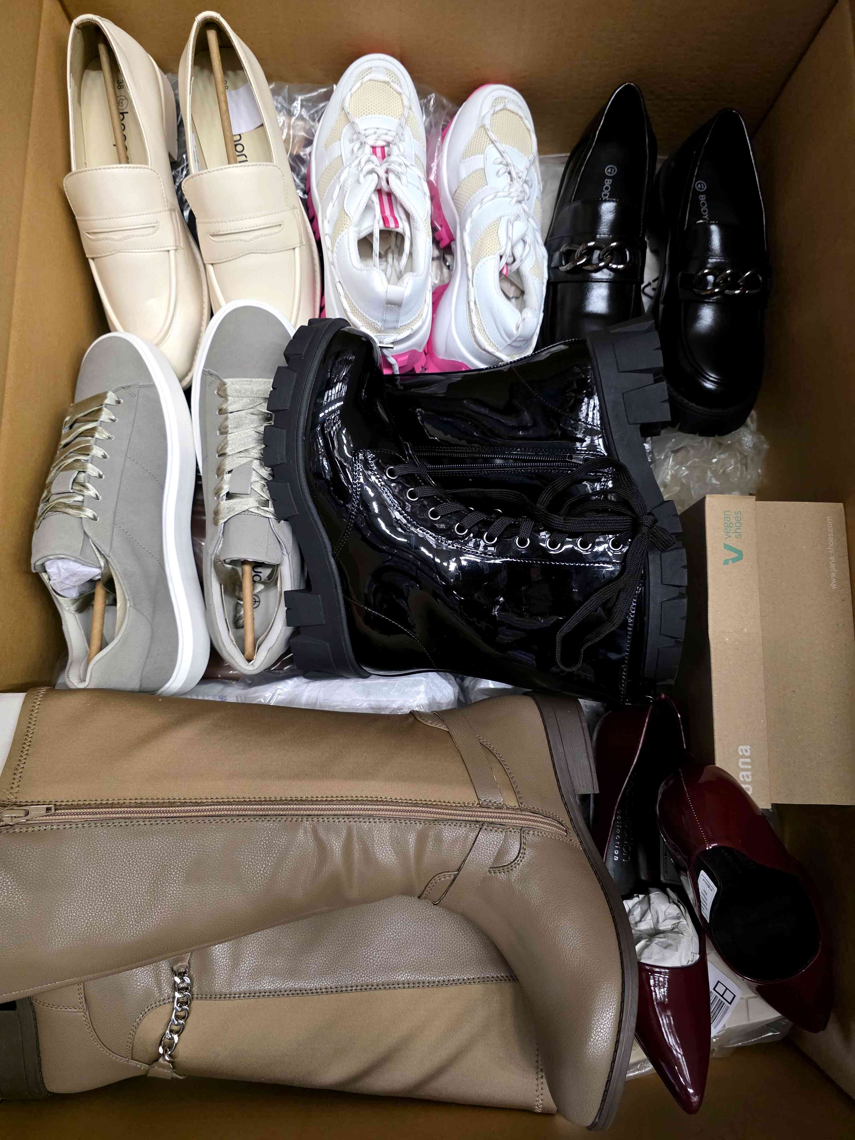 Package of 25 pairs of shoes – mix of women’s and men’s models. Various sizes and seasons. Category A/B – minor, almost invisible flaws. Most of the footwear is in very good condition