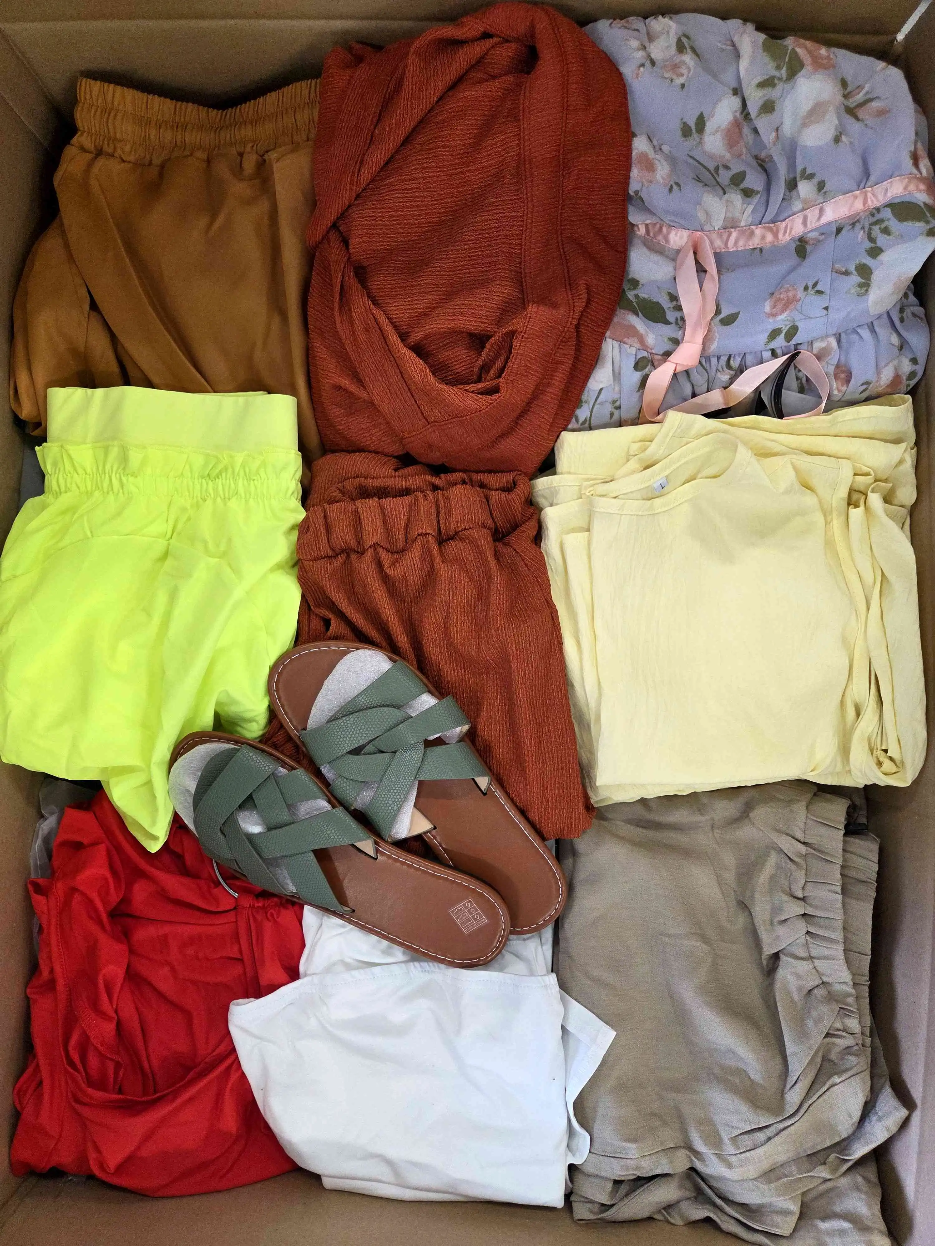 A package of clothing, footwear, and accessories in B/C grade from a well-known Asian brand. The package includes fashionable clothes, comfortable shoes, and stylish accessories in various sizes and styles.
