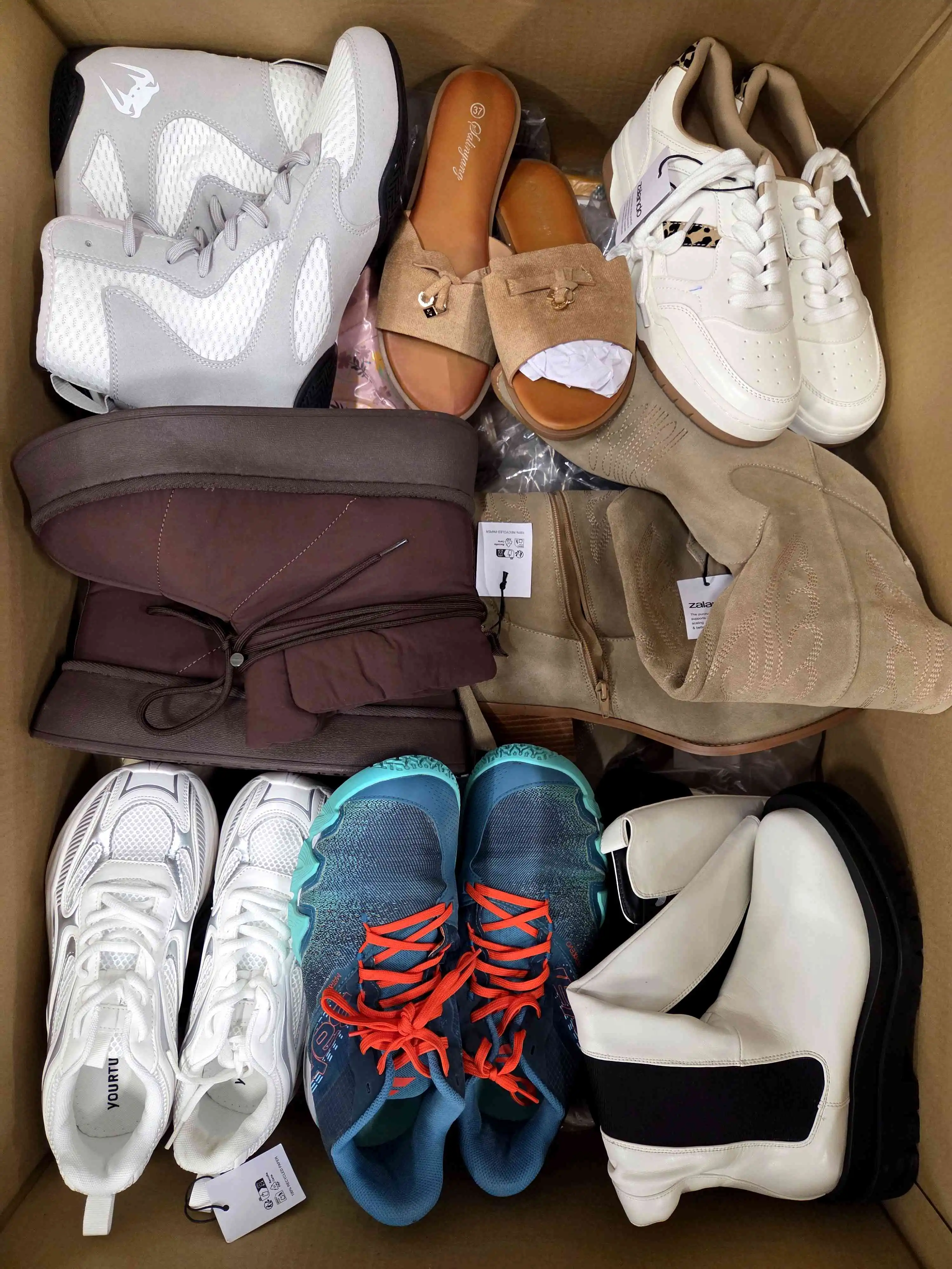 Mix of shoes packed in bags in category B. There are 30 pairs of shoes in the package. Comes directly from the largest and most recognized eCommerce platform in Europe.