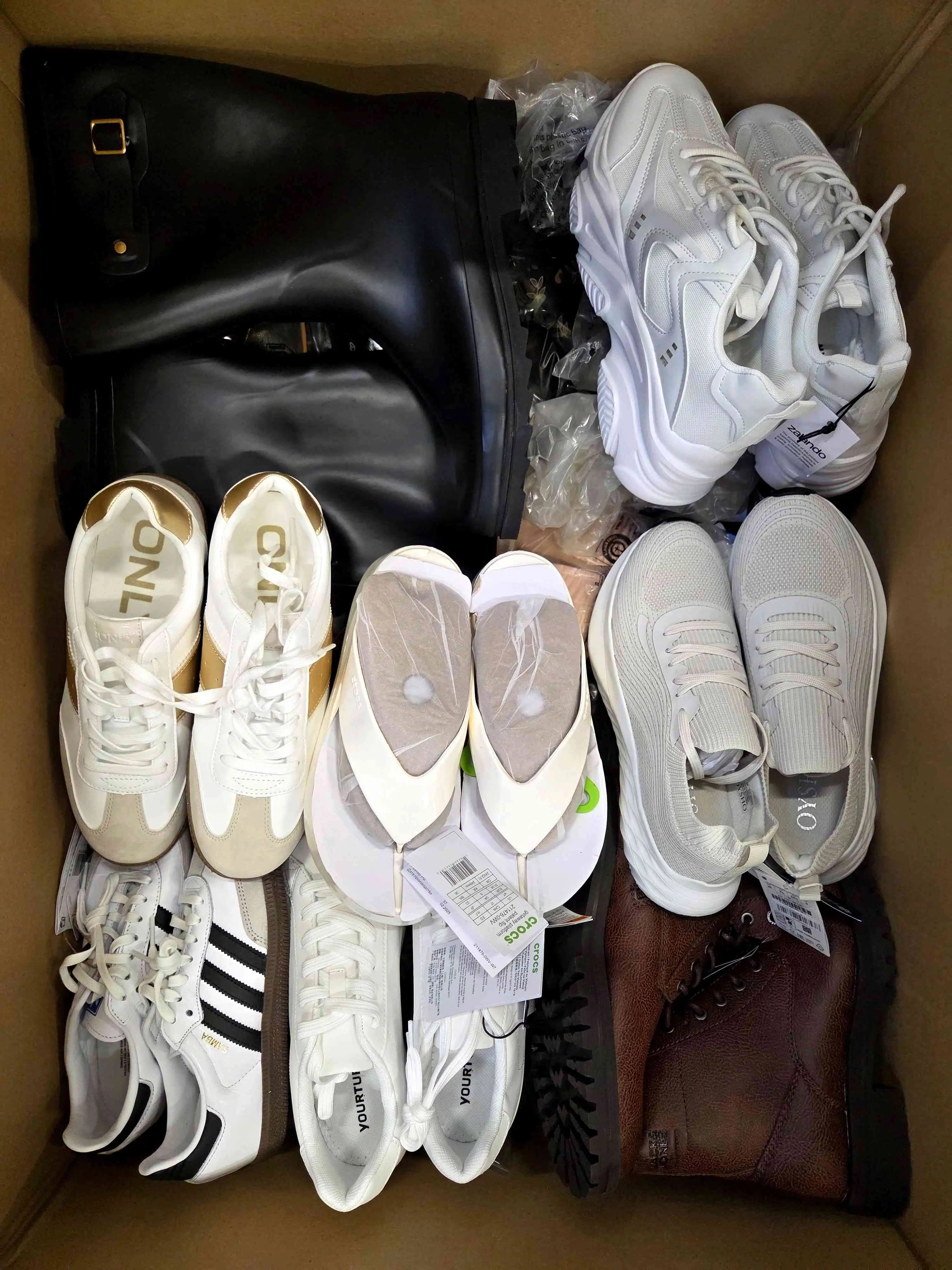 Mix of shoes packed in bags in category B. There are 30 pairs of shoes in the package. Comes directly from the largest and most recognized eCommerce platform in Europe.