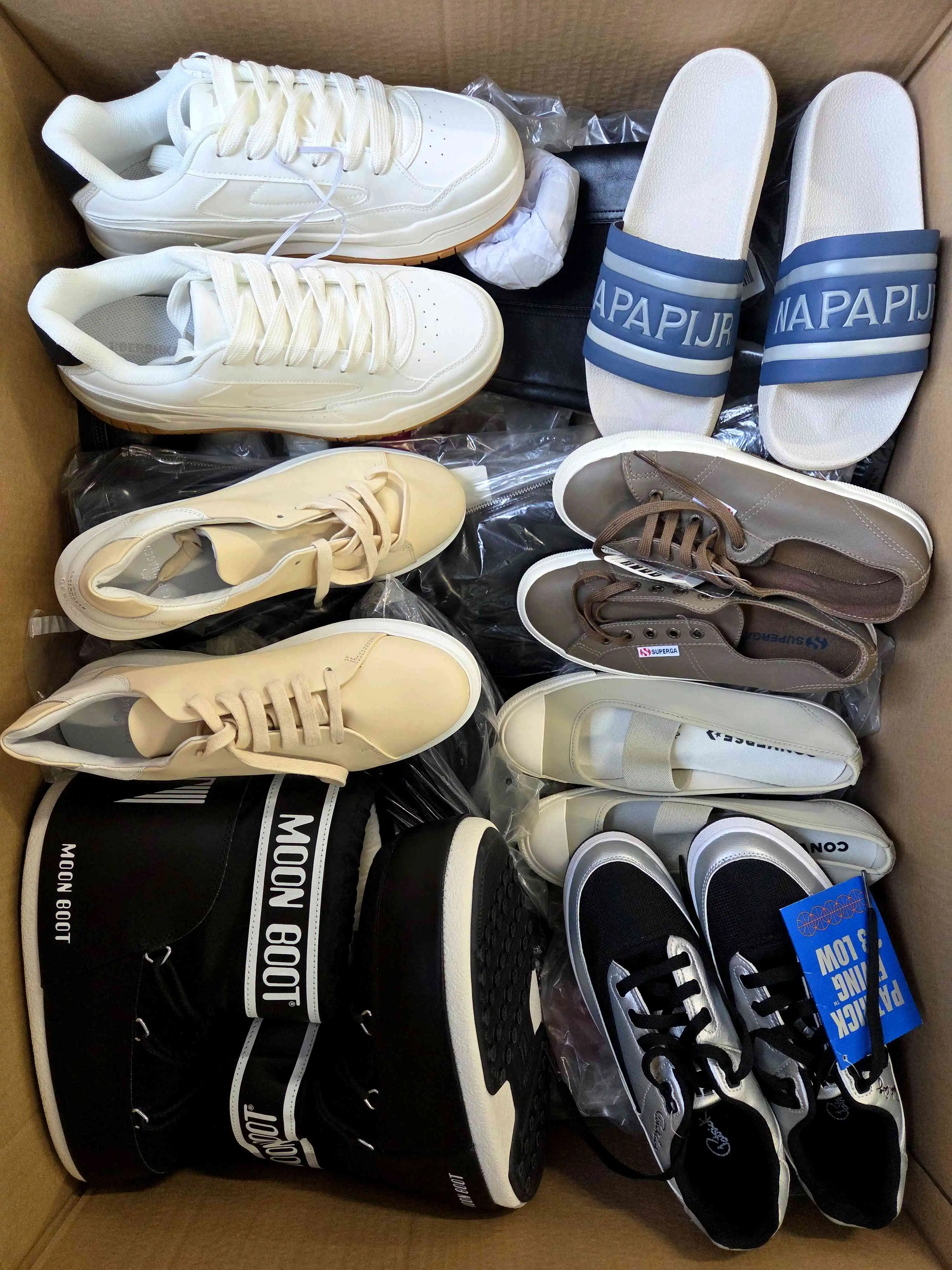 Mix of shoes packed in bags in category B. There are 30 pairs of shoes in one carton. Comes directly from the largest and most recognized eCommerce platform in Europe.