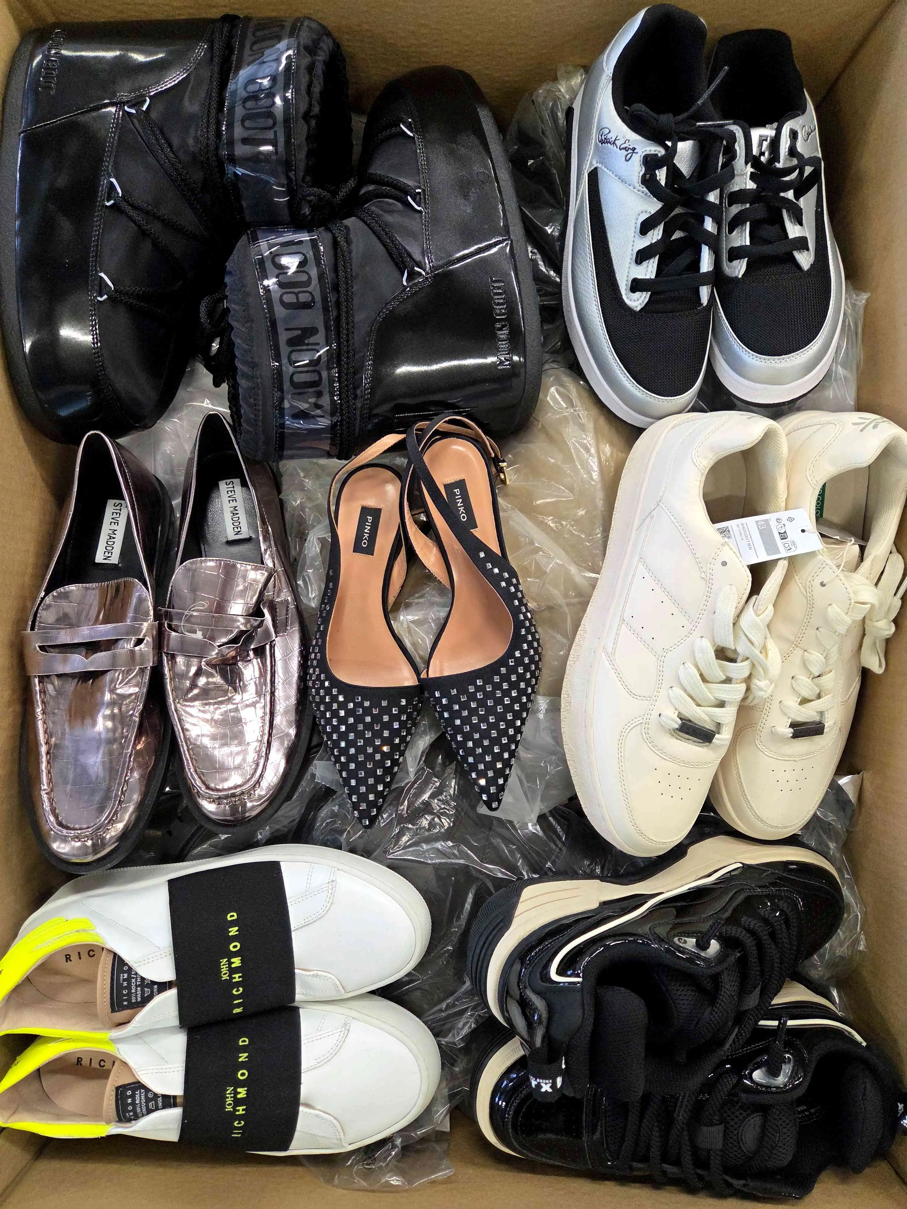 Mix of shoes packed in bags in category B. There are 30 pairs of shoes in one carton. Comes directly from the largest and most recognized eCommerce platform in Europe.