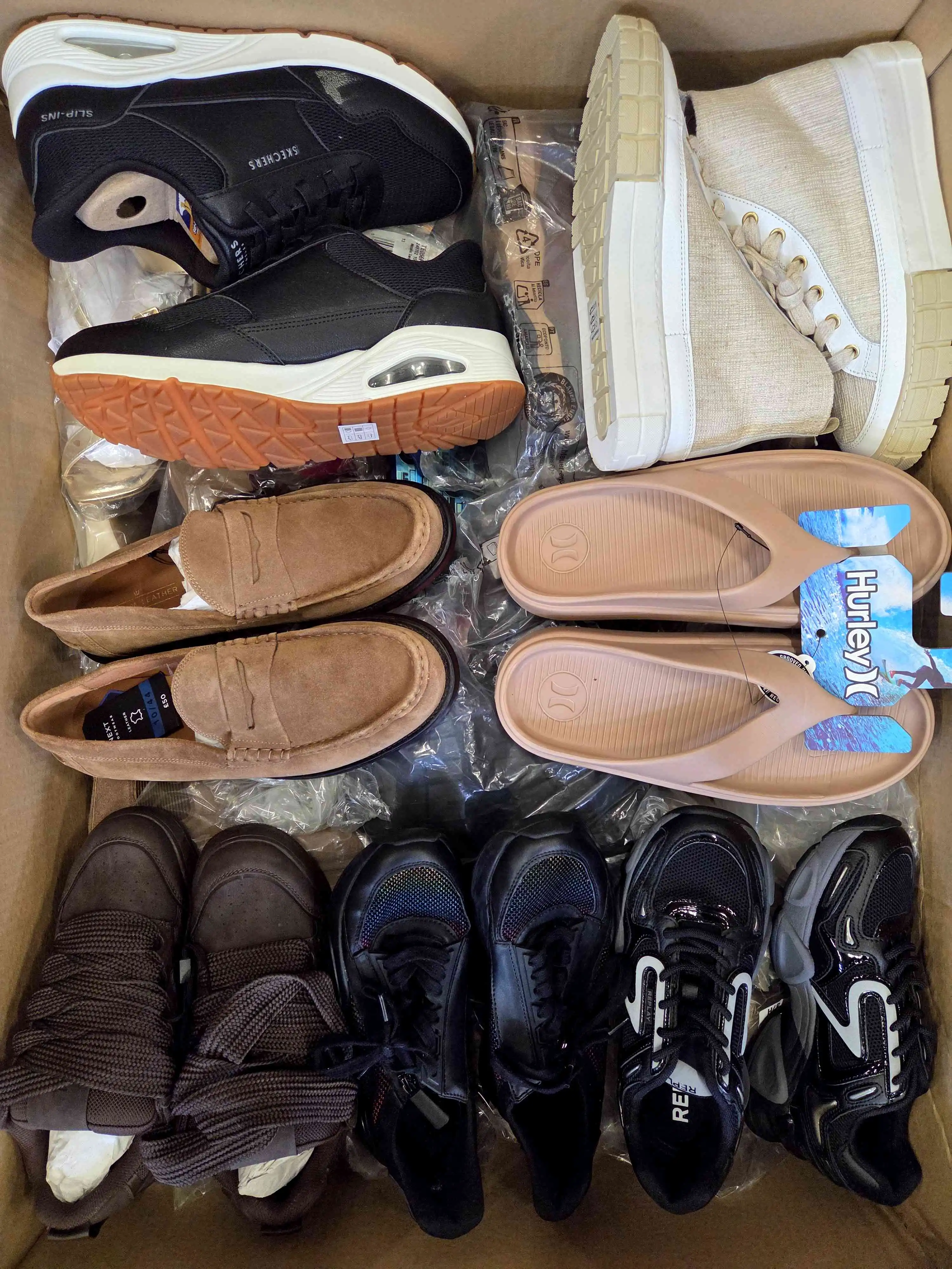 Mix of shoes packed in bags in category B. There are 30 pairs of shoes in one carton. Comes directly from the largest and most recognized eCommerce platform in Europe.
