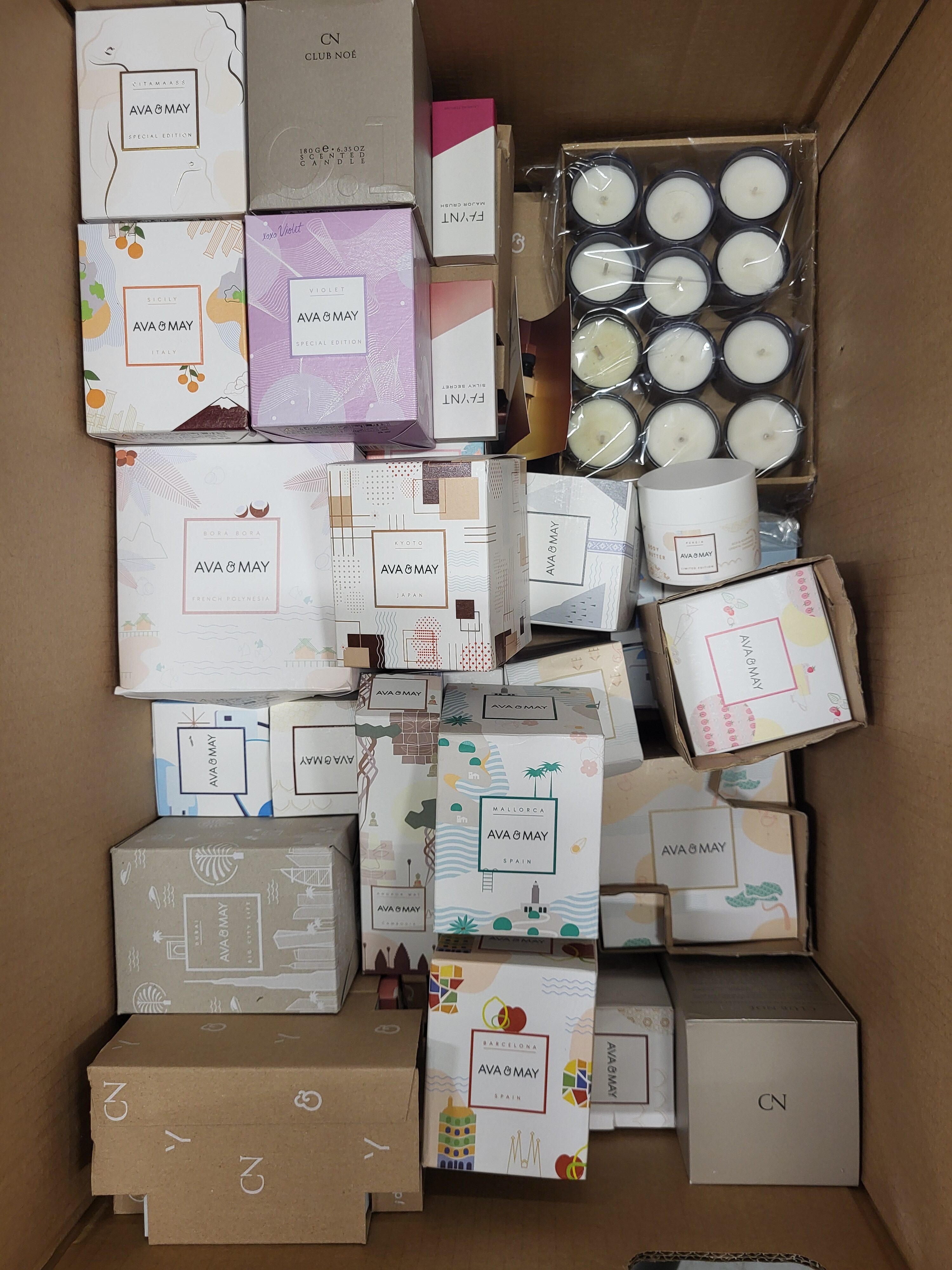 Fragrance packages from the popular foreign manufacturer Ava&May in the B/C category. The package includes, among others, candles (small, medium and large), perfumes, fragrance sticks, samples, creams, advent calendar, matches, etc.