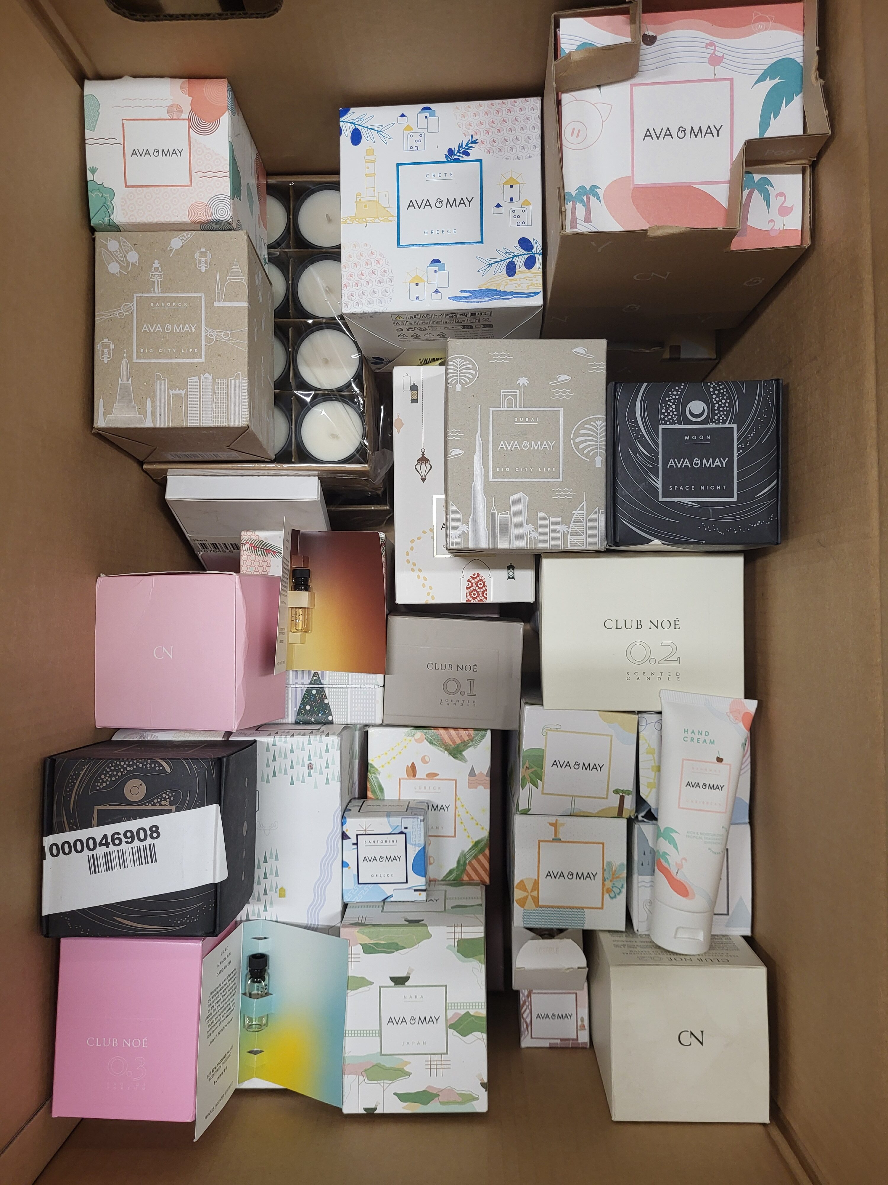 Fragrance packages from the popular foreign manufacturer Ava&May in the B/C category. The package includes, among others, candles (small, medium and large), perfumes, fragrance sticks, samples, creams, advent calendar, matches, etc.
