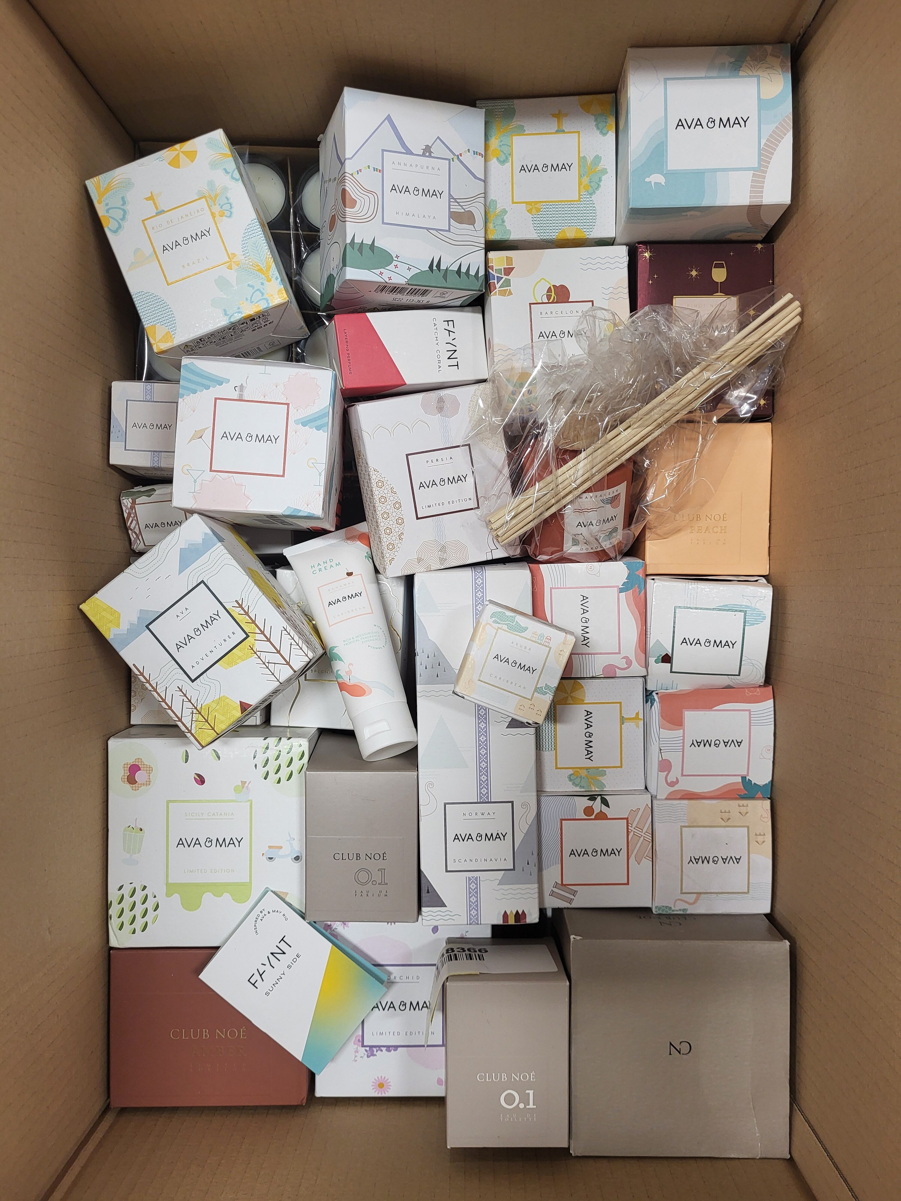 Fragrance packages from the popular foreign manufacturer Ava&May in the B/C category. The package includes, among others, candles (small, medium and large), perfumes, fragrance sticks, samples, creams, advent calendar, matches, etc.