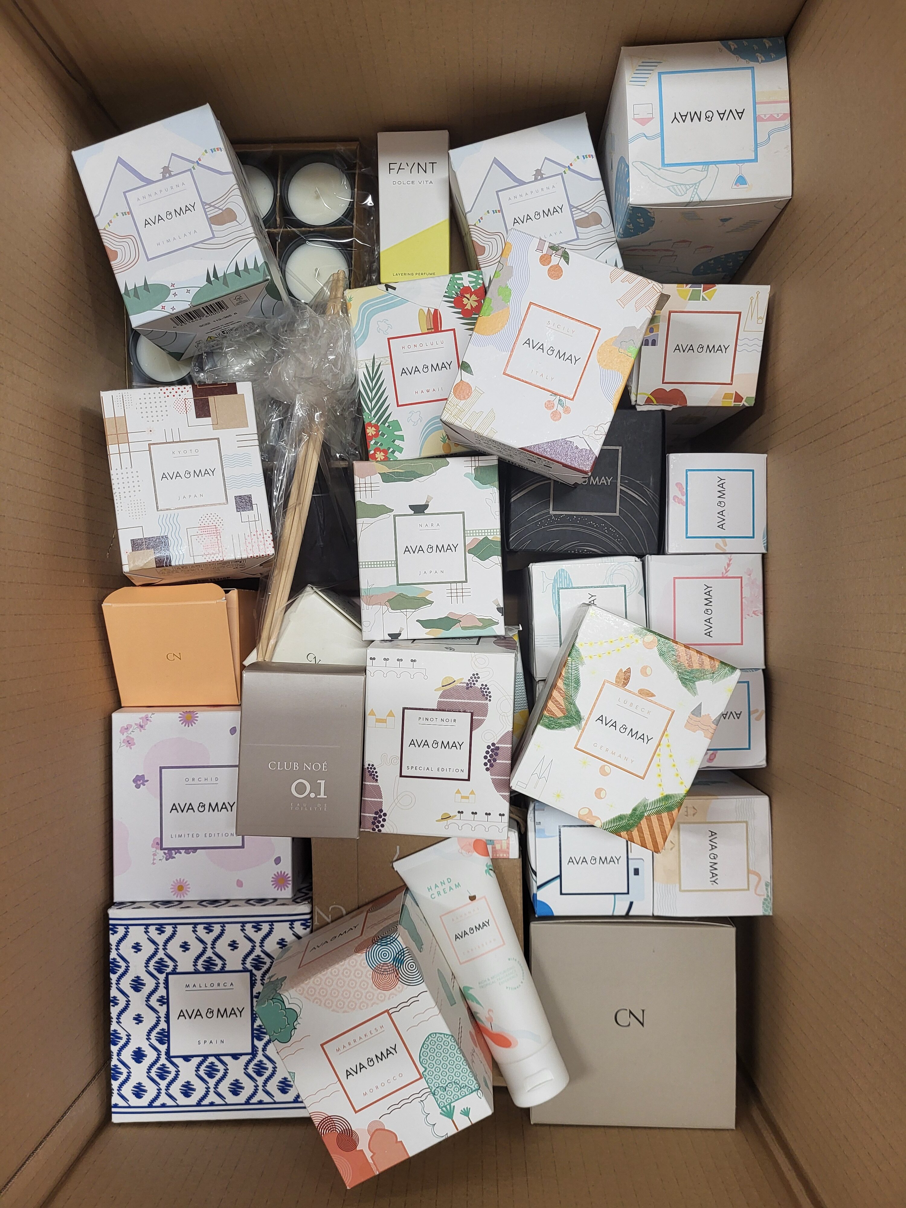 Fragrance packages from the popular foreign manufacturer Ava&May in the B/C category. The package includes, among others, candles (small, medium and large), perfumes, fragrance sticks, samples, creams, advent calendar, matches, etc.