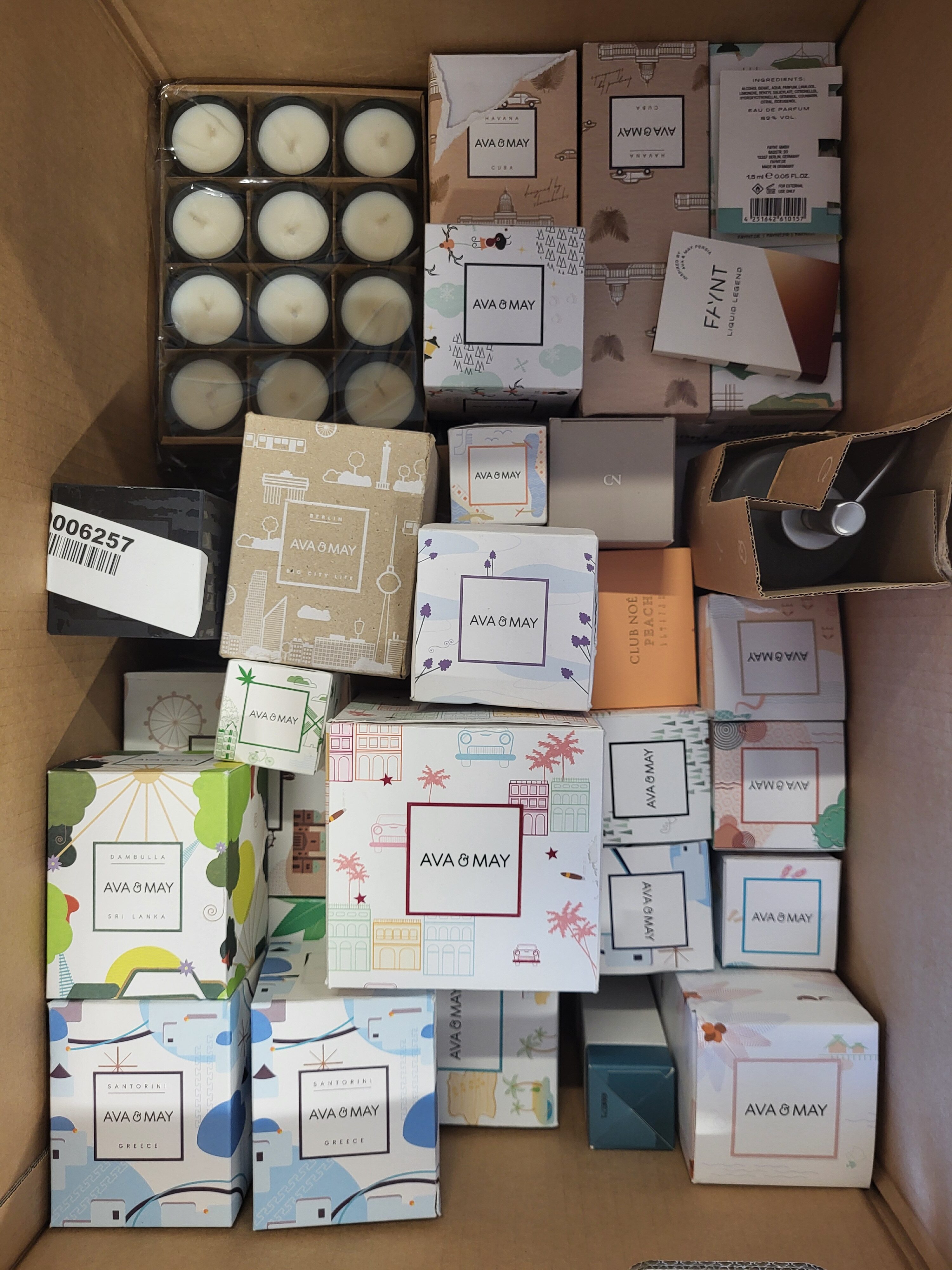 Fragrance packages from the popular foreign manufacturer Ava&May in the B/C category. The package includes, among others, candles (small, medium and large), perfumes, fragrance sticks, samples, creams, advent calendar, matches, etc.