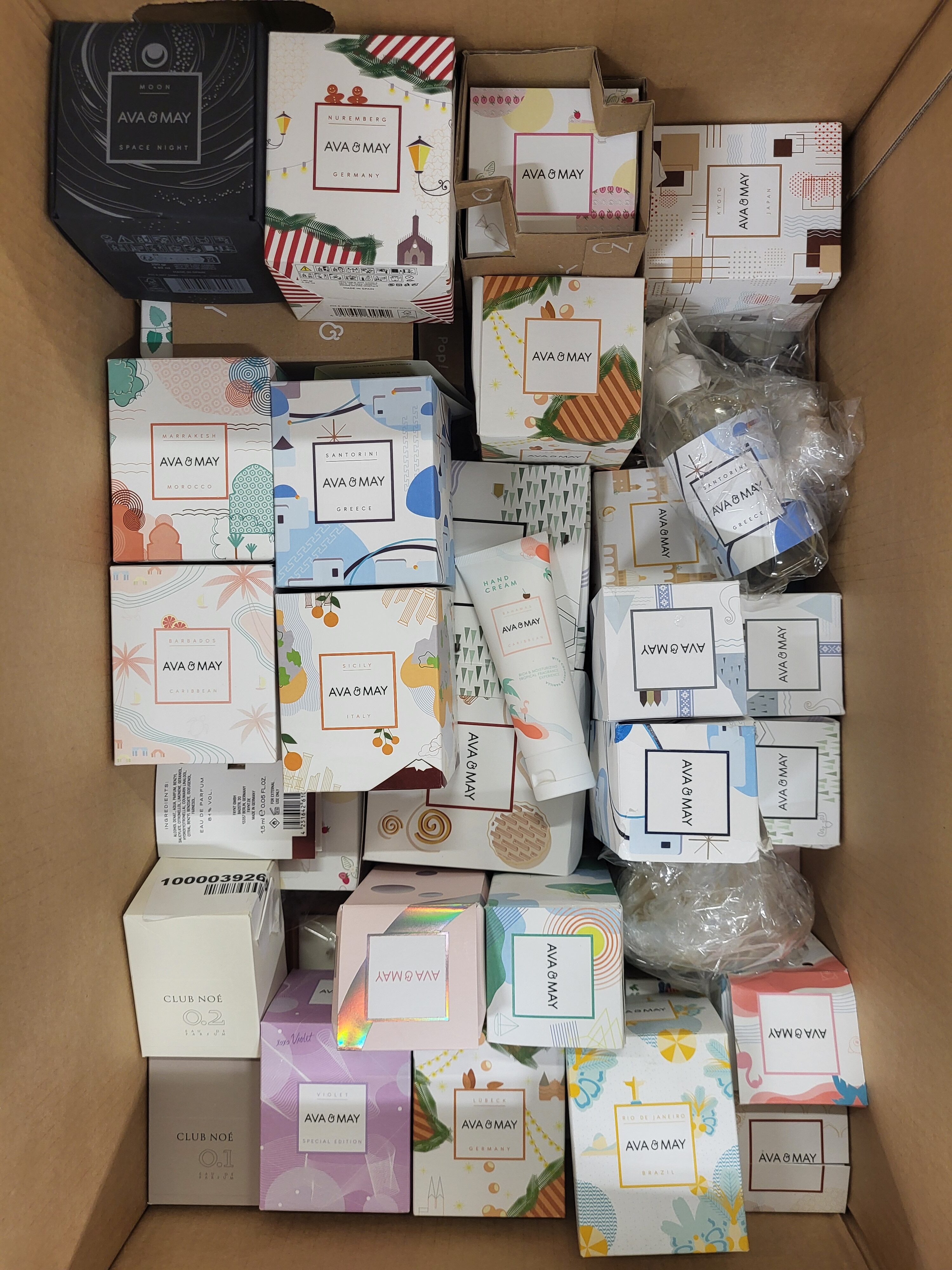 Fragrance packages from the popular foreign manufacturer Ava&May in the B/C category. The package includes, among others, candles (small, medium and large), perfumes, fragrance sticks, samples, creams, advent calendar, matches, etc.