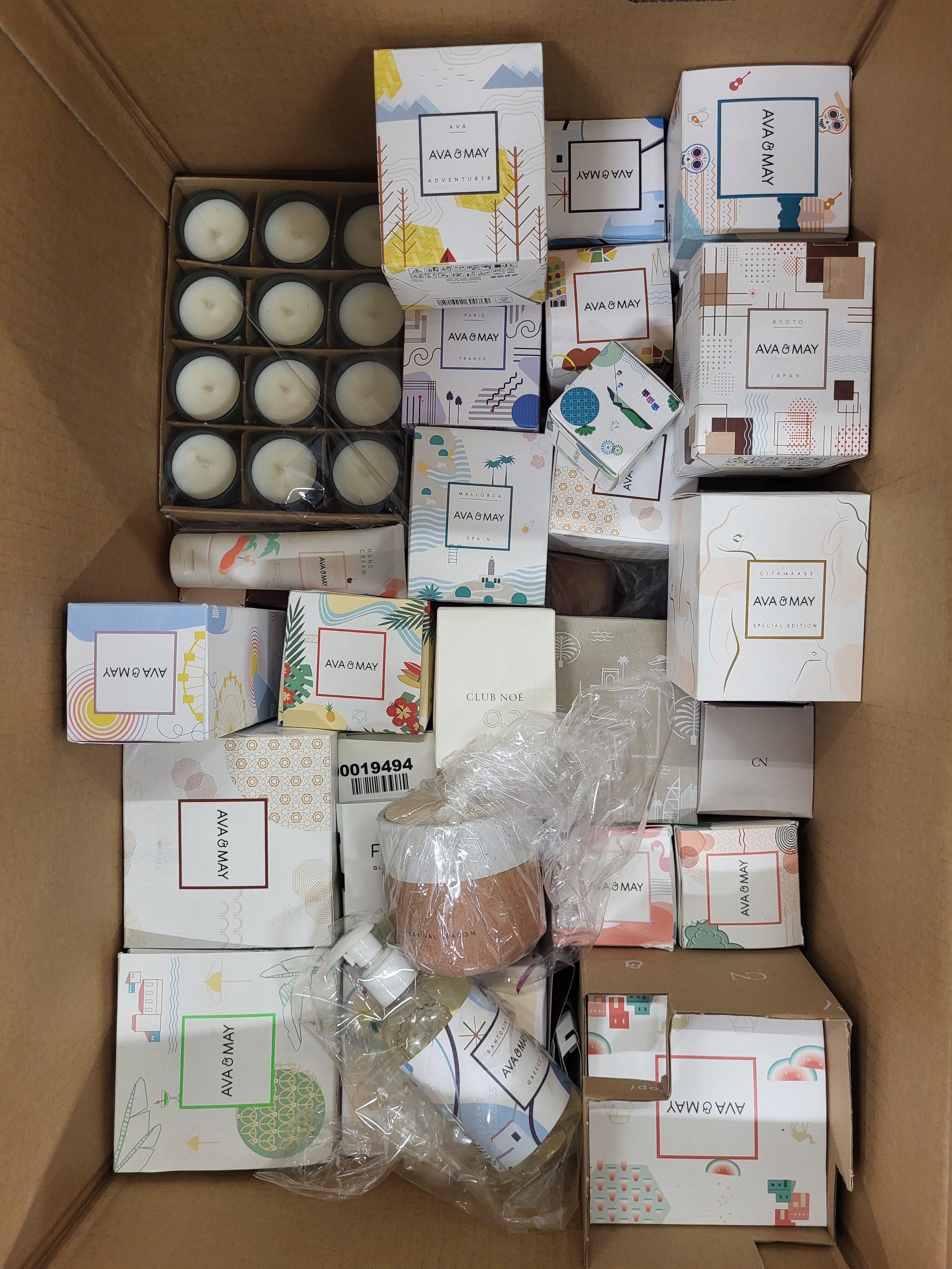 Fragrance packages from the popular foreign manufacturer Ava&May in the B/C category. The package includes, among others, candles (small, medium and large), perfumes, fragrance sticks, samples, creams, advent calendar, matches, etc.