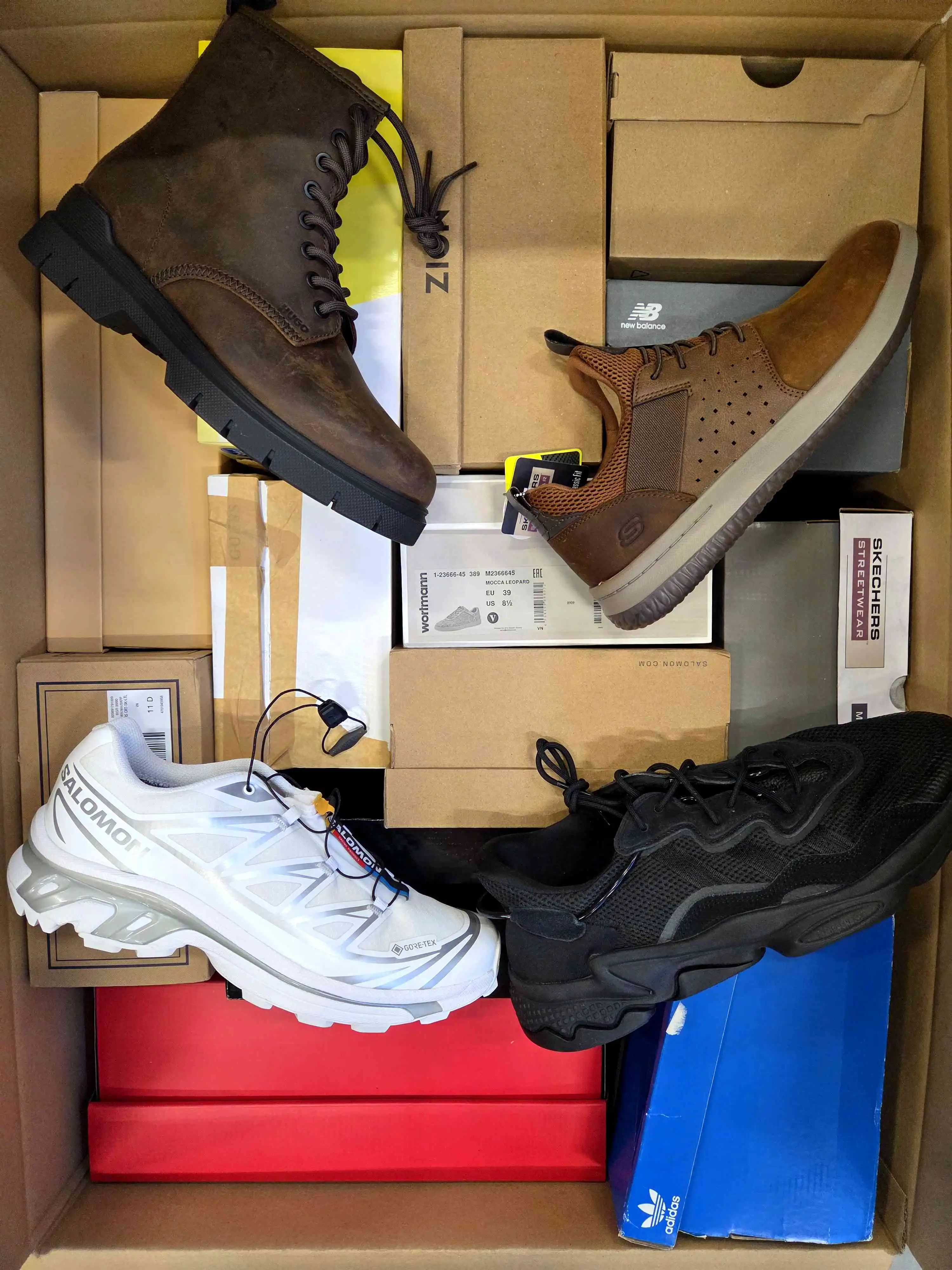 Footwear is packed in original or replacement cardboard boxes and may have traces of use or defects, i.e. cracks on the mesh, peeling soles, dirt, broken locks, abrasions, etc. Some footwear may be new.