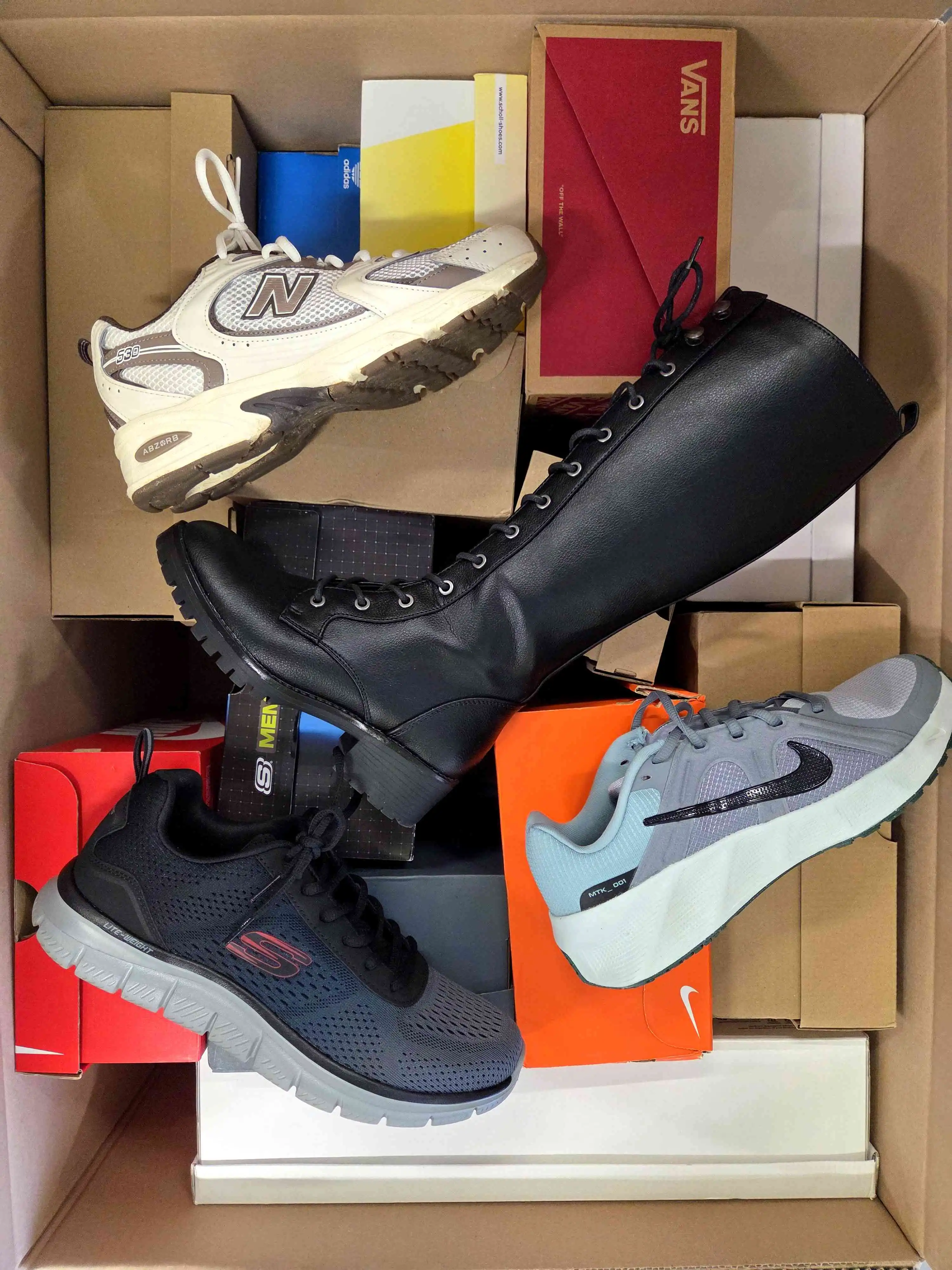 Footwear is packed in original or replacement cardboard boxes and may have traces of use or defects, i.e. cracks on the mesh, peeling soles, dirt, broken locks, abrasions, etc. Some footwear may be new.