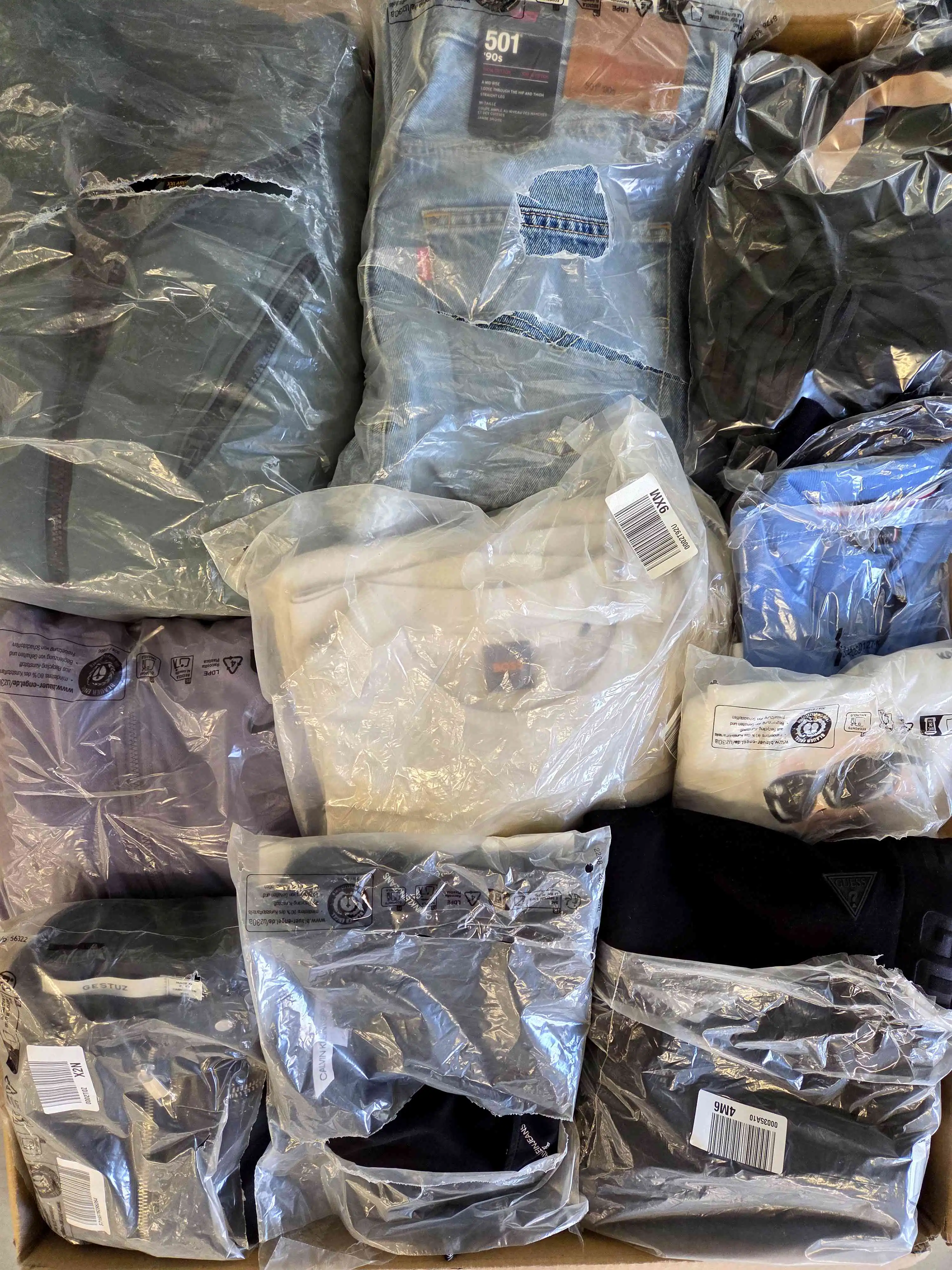 Top brands selected for the photo. According to this category, clothes have significant signs of use or defects (Tears on the seam, holes, dirt, broken zipper, cuts, etc.). Partially defective beyond repair.