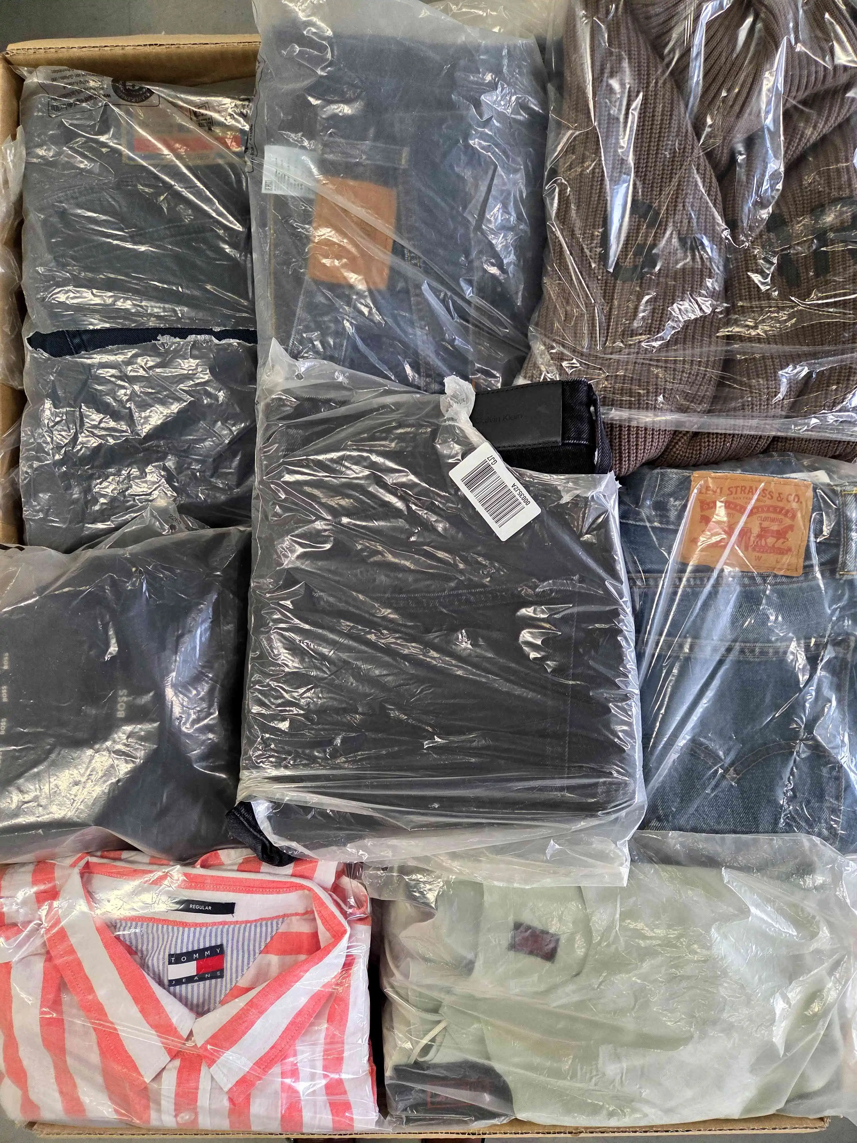 The photo shows a package with clothing in the category D.