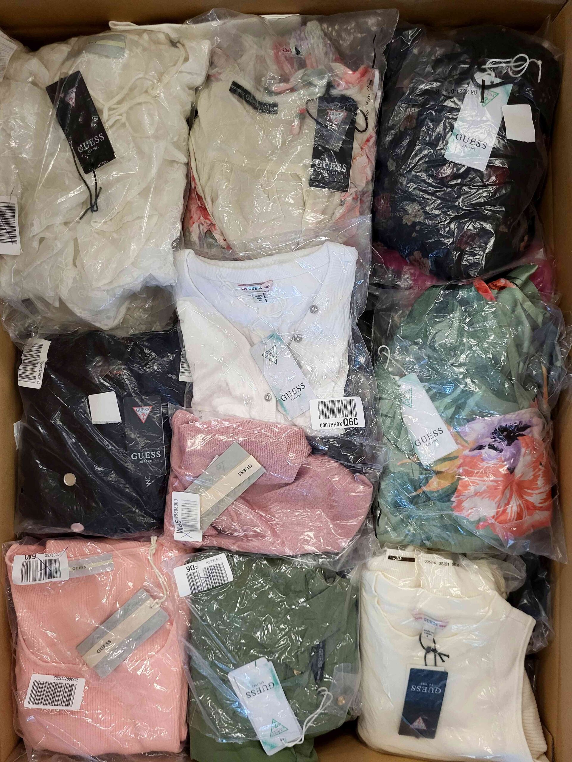 The package includes around fifty pieces from a single brand – such as dresses, hoodies, sweaters, jackets, jeans, sweatpants, t-shirts, and a few underwear items. The garments come with minor defects typical for Category B stock, such as small stains, missing buttons, or light fabric pulls.