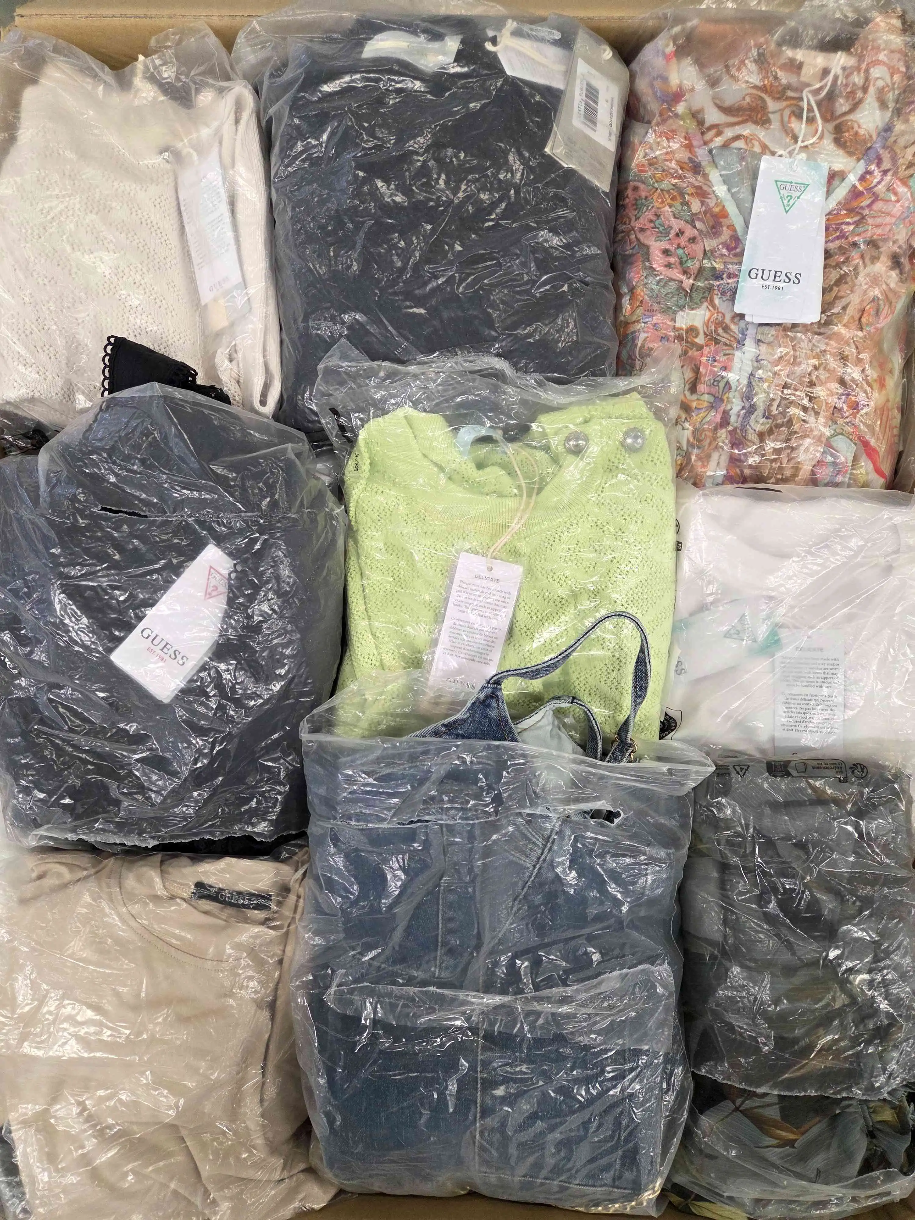 The package includes around 65 pieces from a single brand – such as dresses, hoodies, sweaters, jackets, jeans, sweatpants. The garments come with minor defects typical for Category B stock, such as small stains, missing buttons, or light fabric pulls.