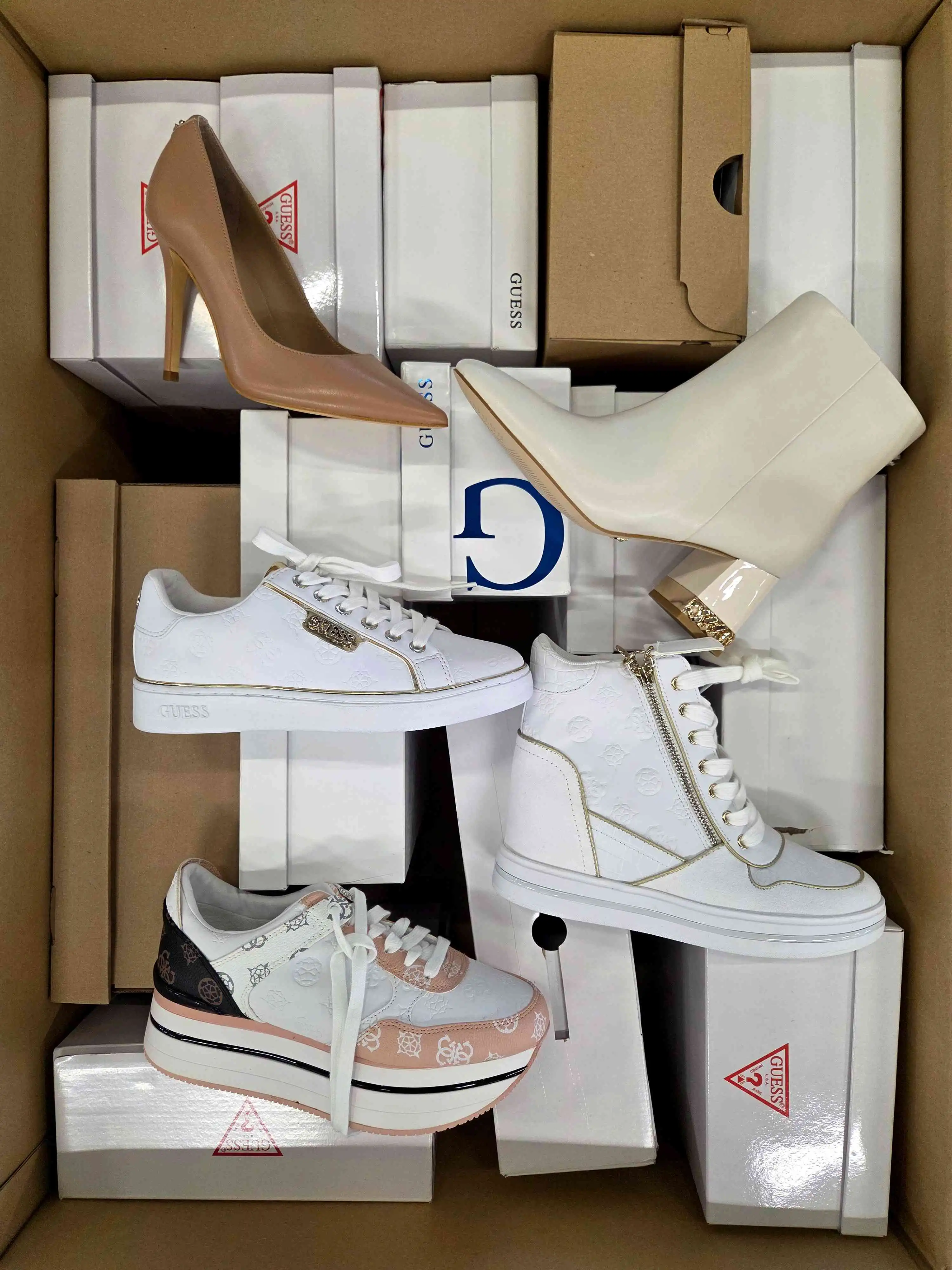 The product shows minimal, reversible signs of use (slight dirt) or small manufacturer defects. The shoes are packed in original or replacement boxes. The package includes 100% genuine footwear, not divided by seasonality — it may contain both winter and summer models. The assortment can include men’s, women’s, and children’s shoes.