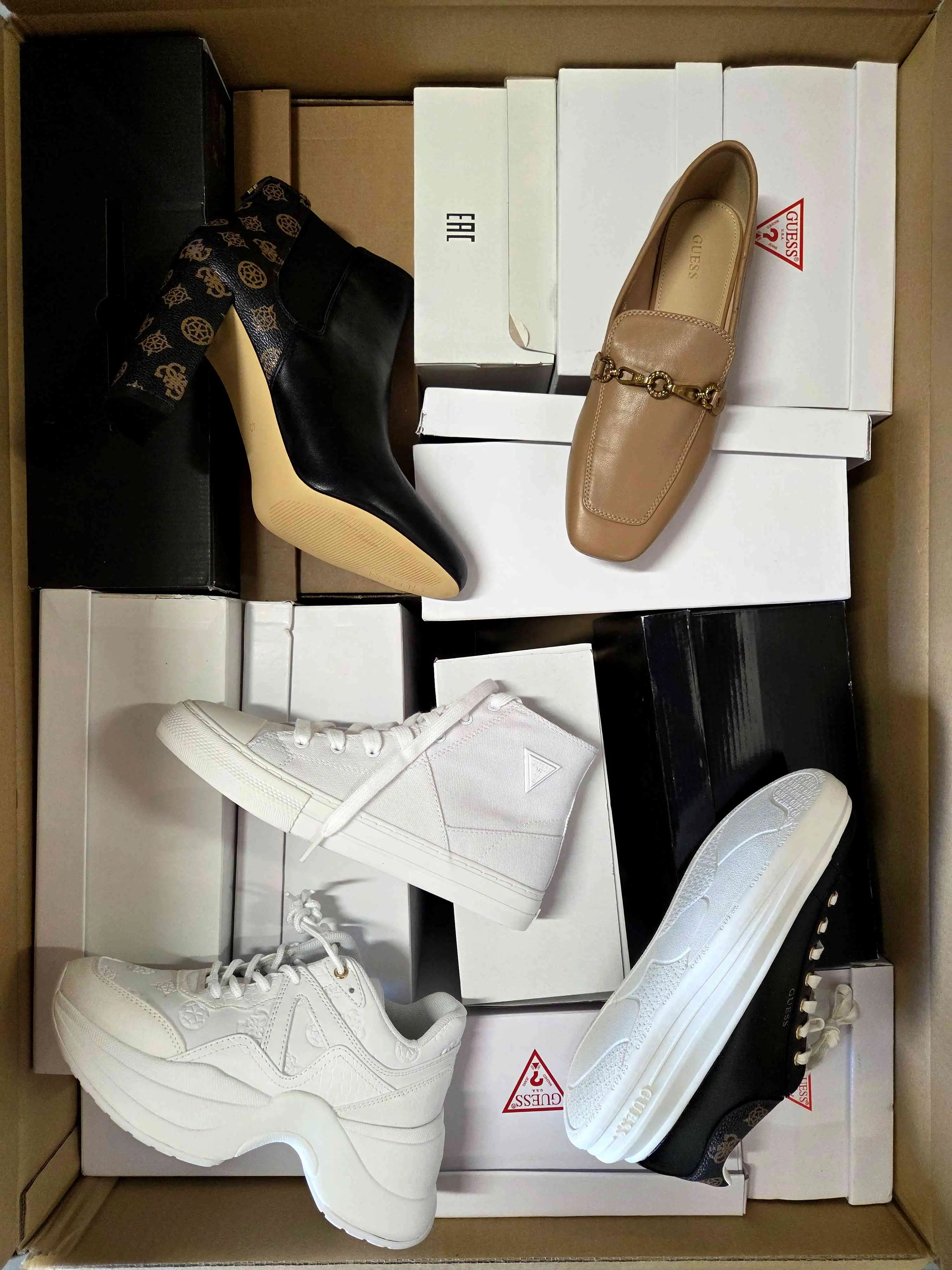 The product shows minimal, reversible signs of use (slight dirt) or small manufacturer defects. The shoes are packed in original or replacement boxes. The package includes 100% genuine footwear, not divided by seasonality — it may contain both winter and summer models. The assortment can include men’s, women’s, and children’s shoes.