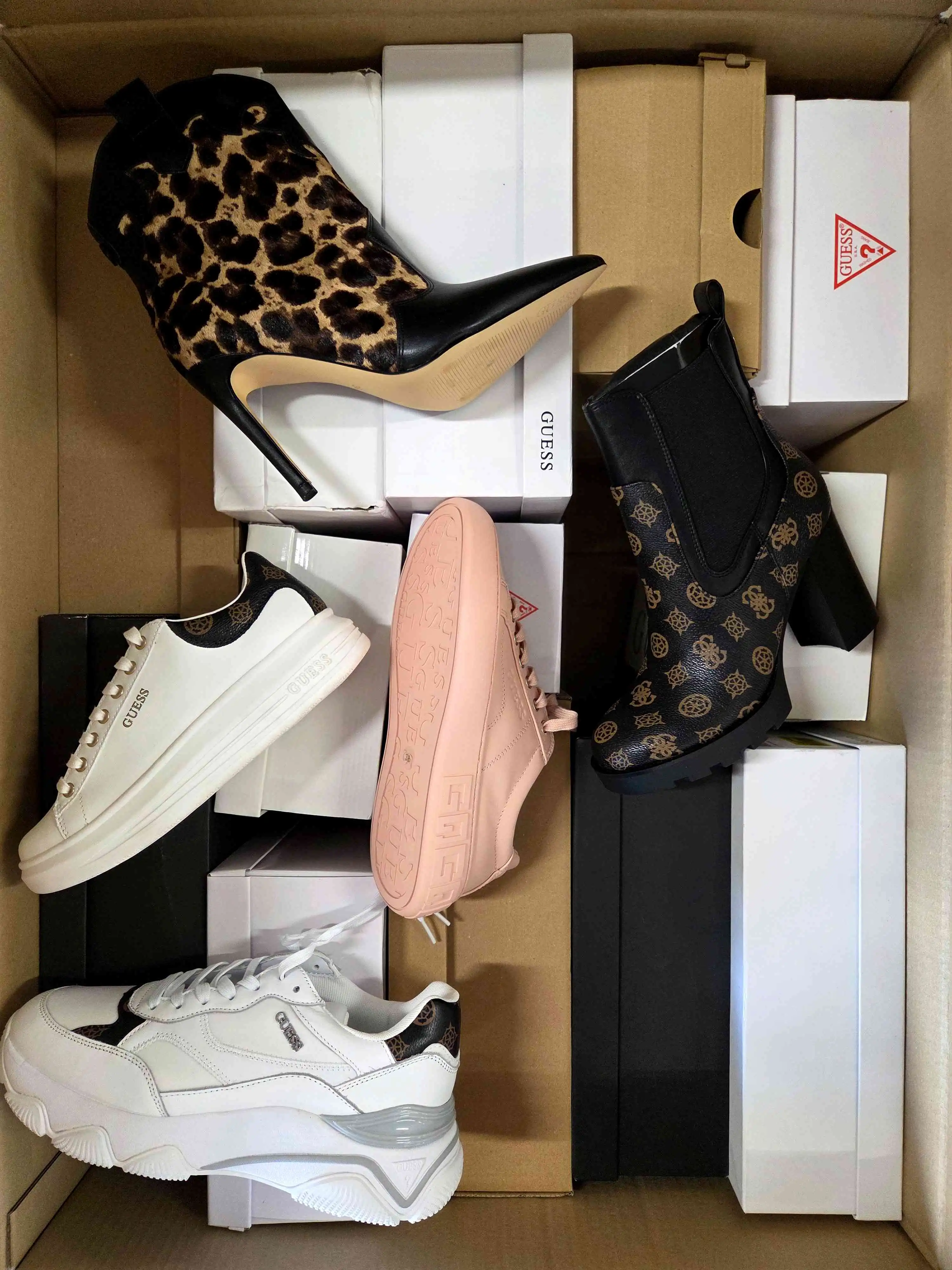 The product shows minimal, reversible signs of use (slight dirt) or small manufacturer defects. The shoes are packed in original or replacement boxes. The package includes 100% genuine footwear, not divided by seasonality — it may contain both winter and summer models. The assortment can include men’s, women’s, and children’s shoes.