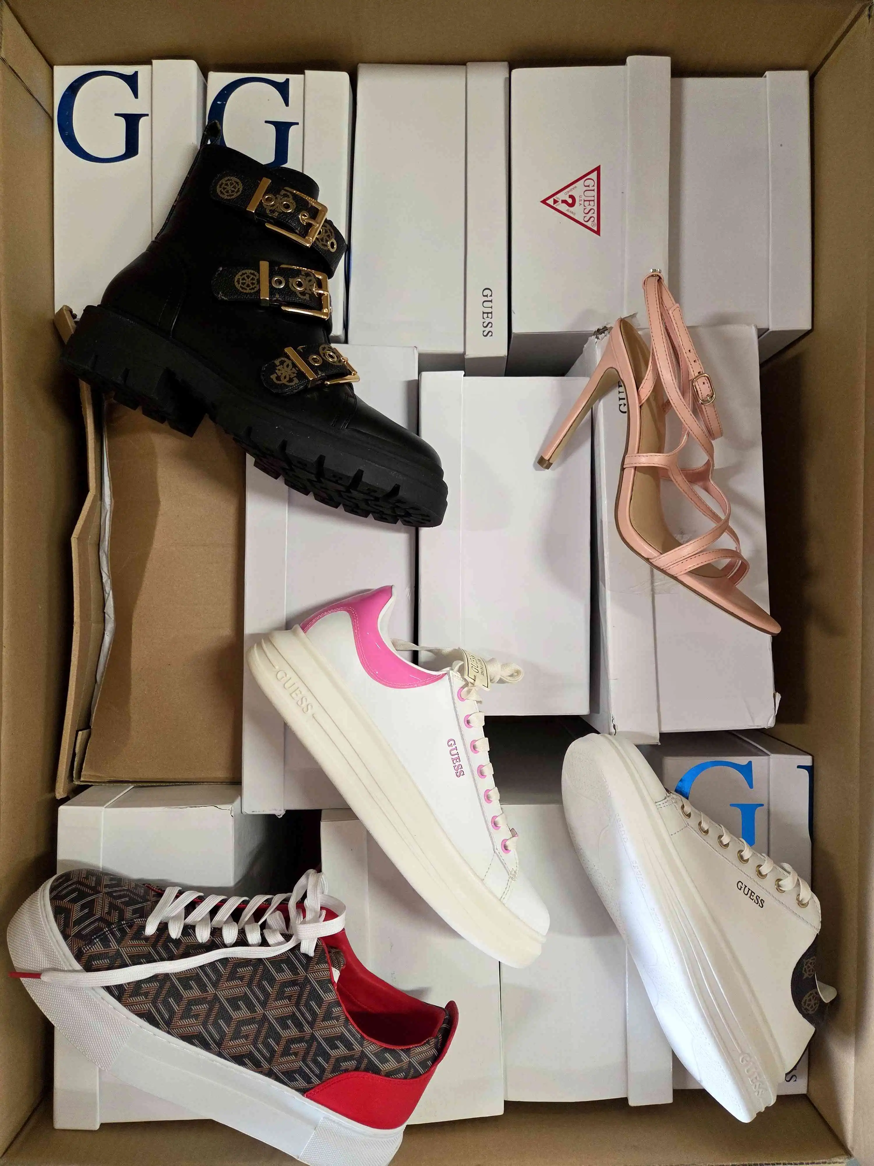 The product shows minimal, reversible signs of use (slight dirt) or small manufacturer defects. The shoes are packed in original or replacement boxes. The package includes 100% genuine footwear, not divided by seasonality — it may contain both winter and summer models. The assortment can include men’s, women’s, and children’s shoes.