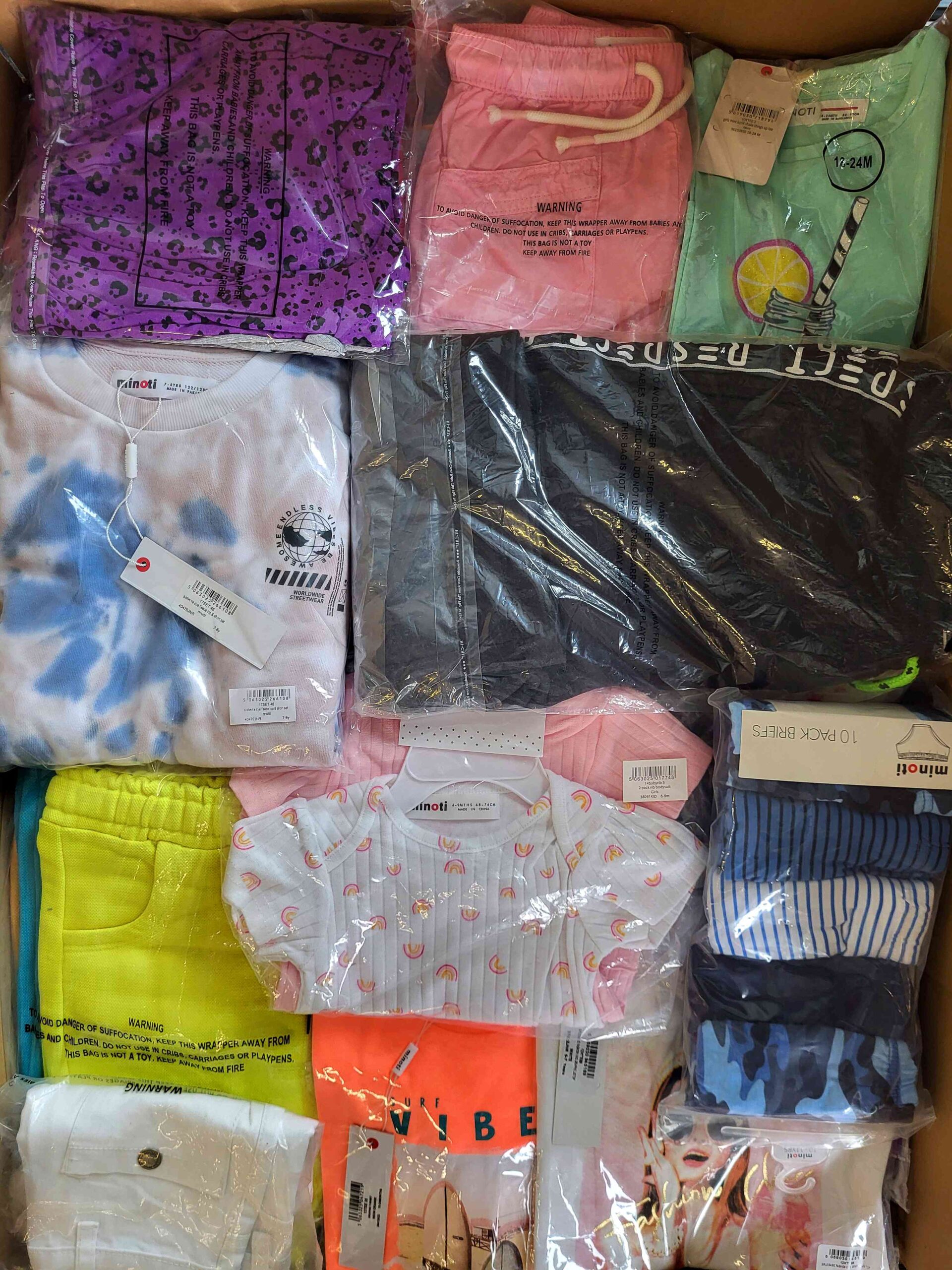 The Minoti children’s clothing bundle includes approximately 100 pieces of new, original garments designed for children aged 3 months to 14 years.