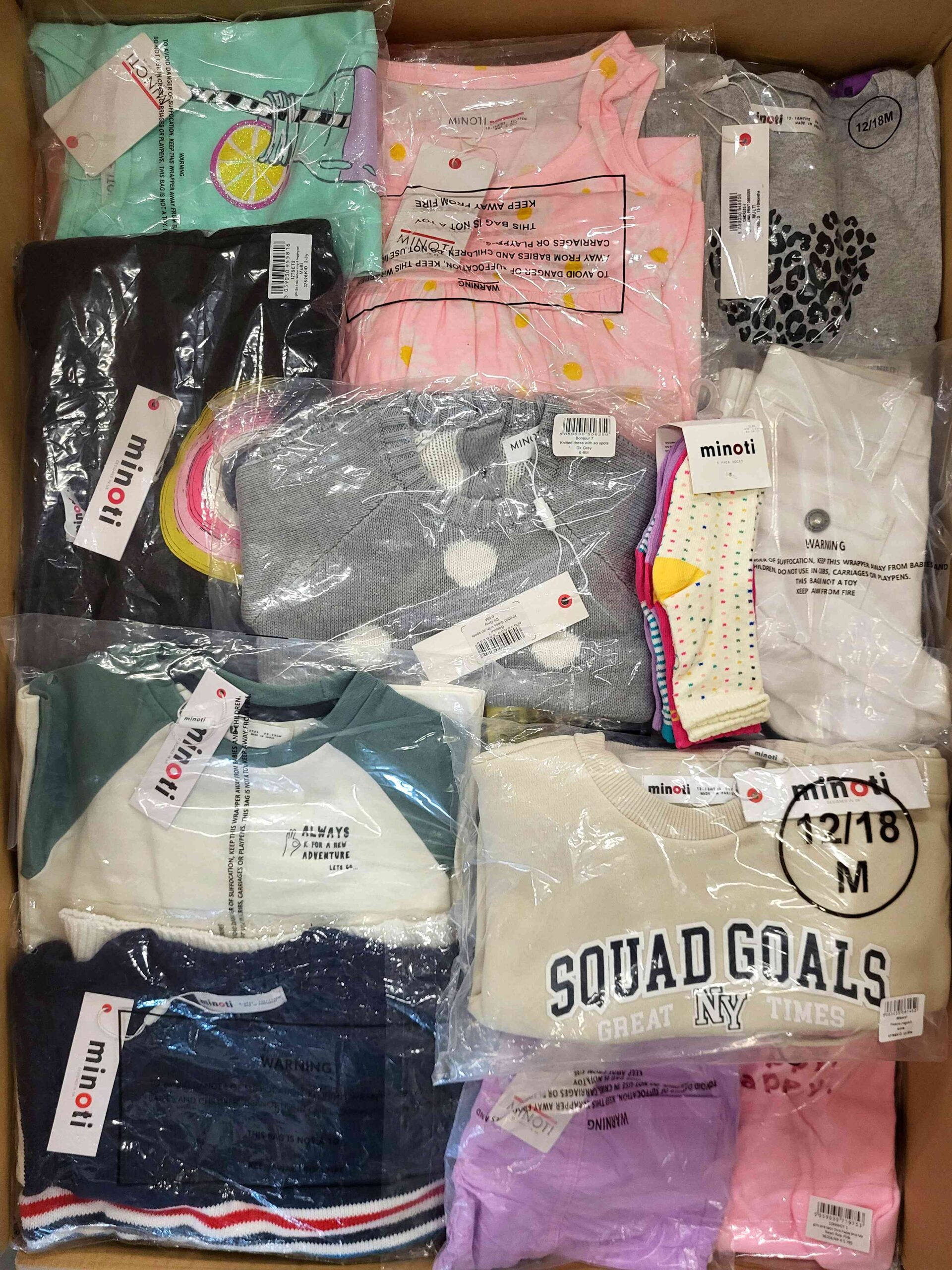 The Minoti children’s clothing bundle includes approximately 100 pieces of new, original garments designed for children aged 3 months to 14 years.