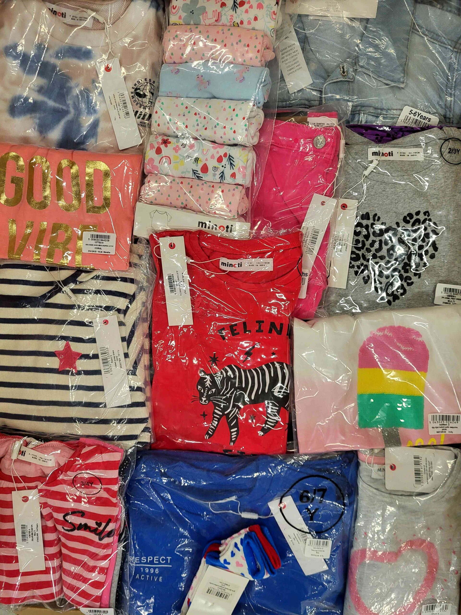 The Minoti children’s clothing bundle includes approximately 100 pieces of new, original garments designed for children aged 3 months to 14 years.