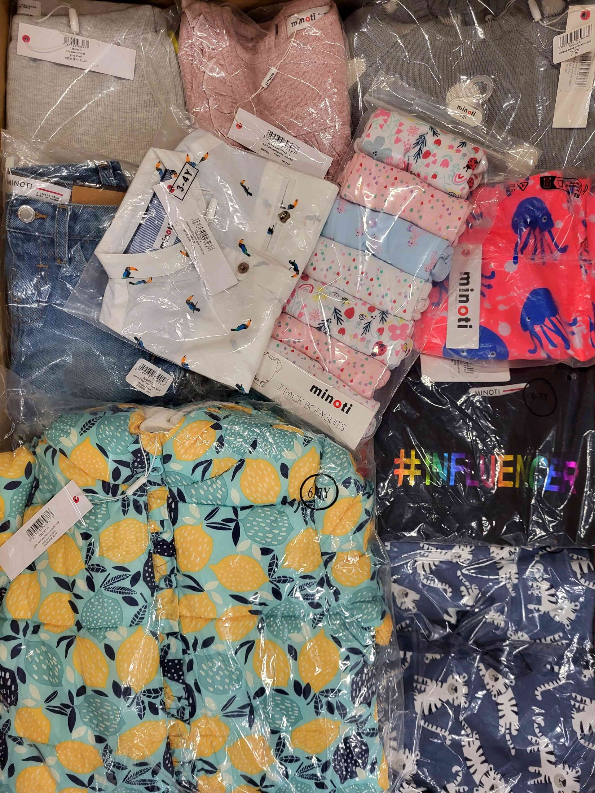 The Minoti children’s clothing bundle includes approximately 100 pieces of new, original garments designed for children aged 3 months to 14 years.